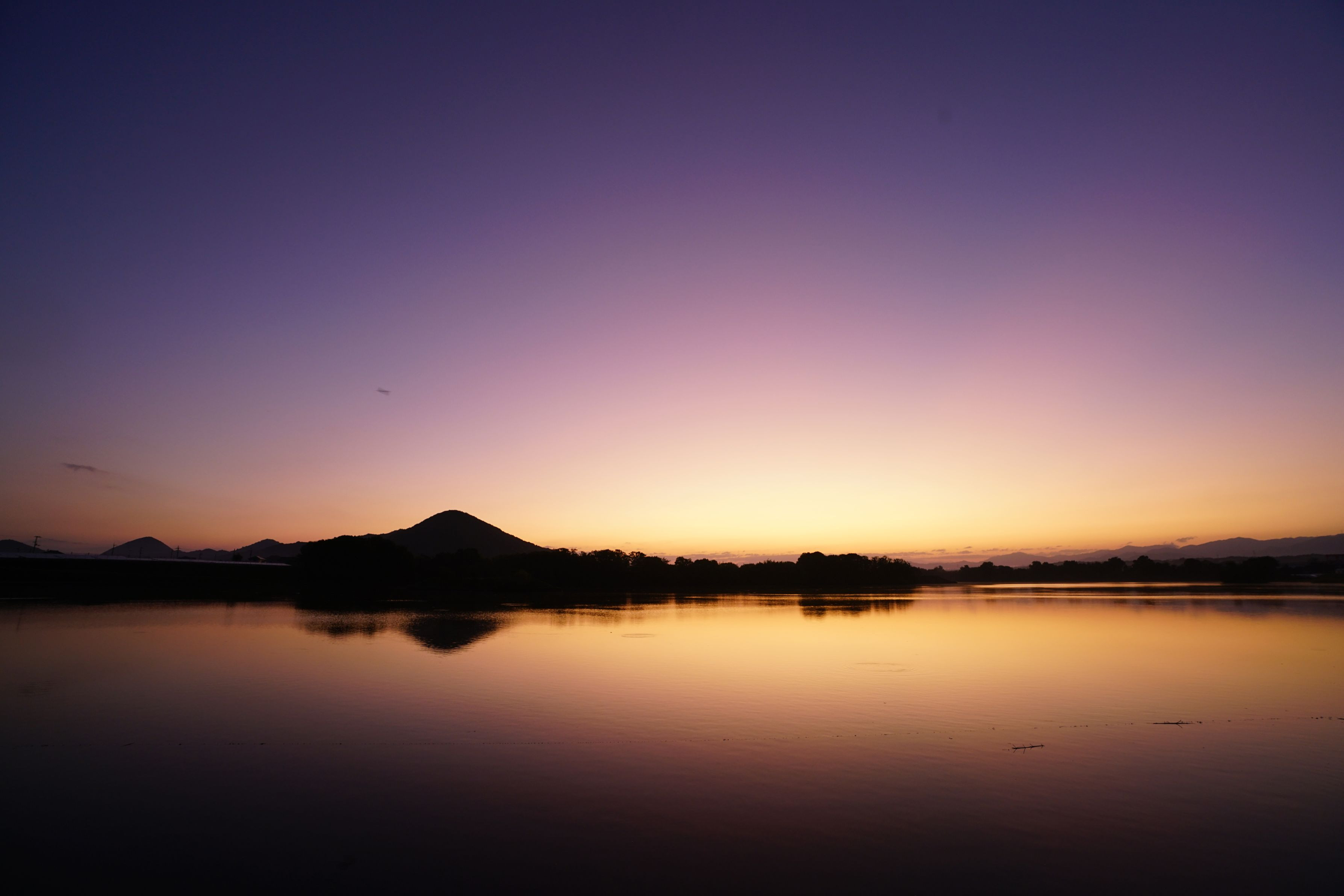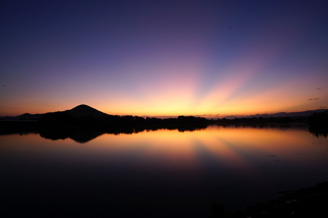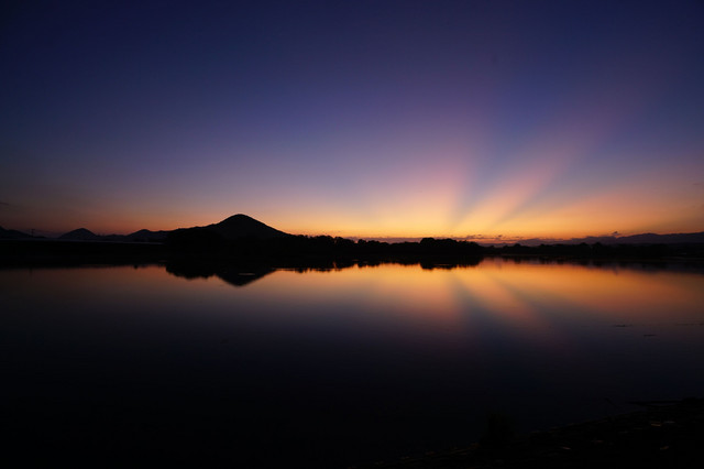 薄明光線を水面にも映しました。