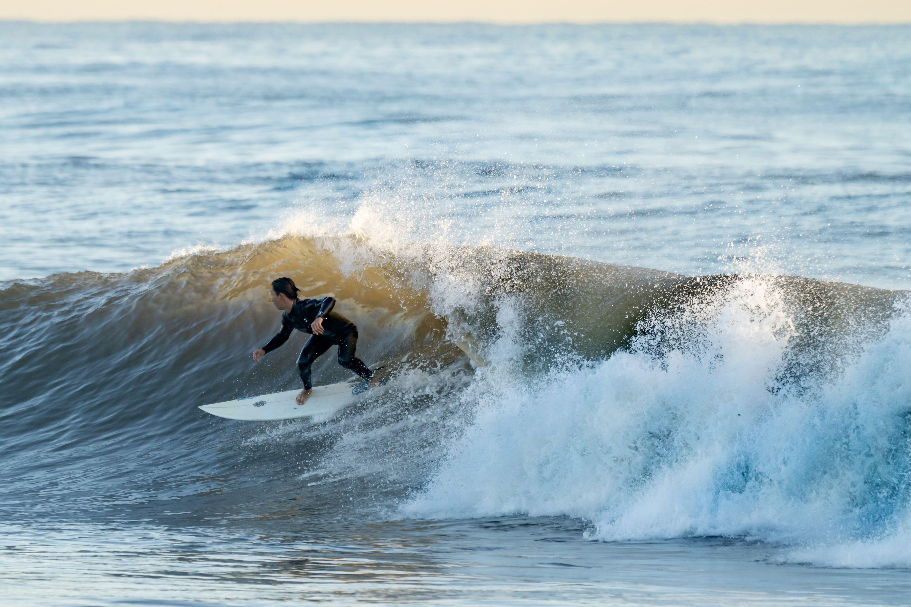 朝陽で輝く波間を疾走する姿が爽快でした。