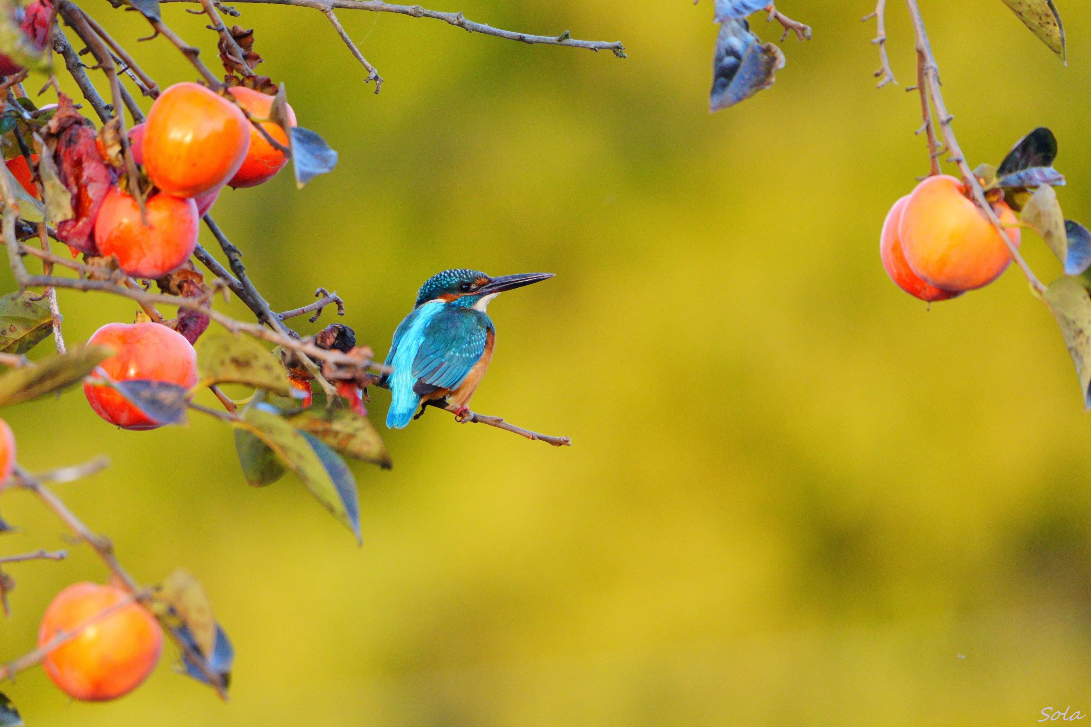 熟した柿の実が沢山有ったが鳥が食べに来ていないので渋柿かな?勿論カワセミさんは渋柿でも枝に止まってくれます。