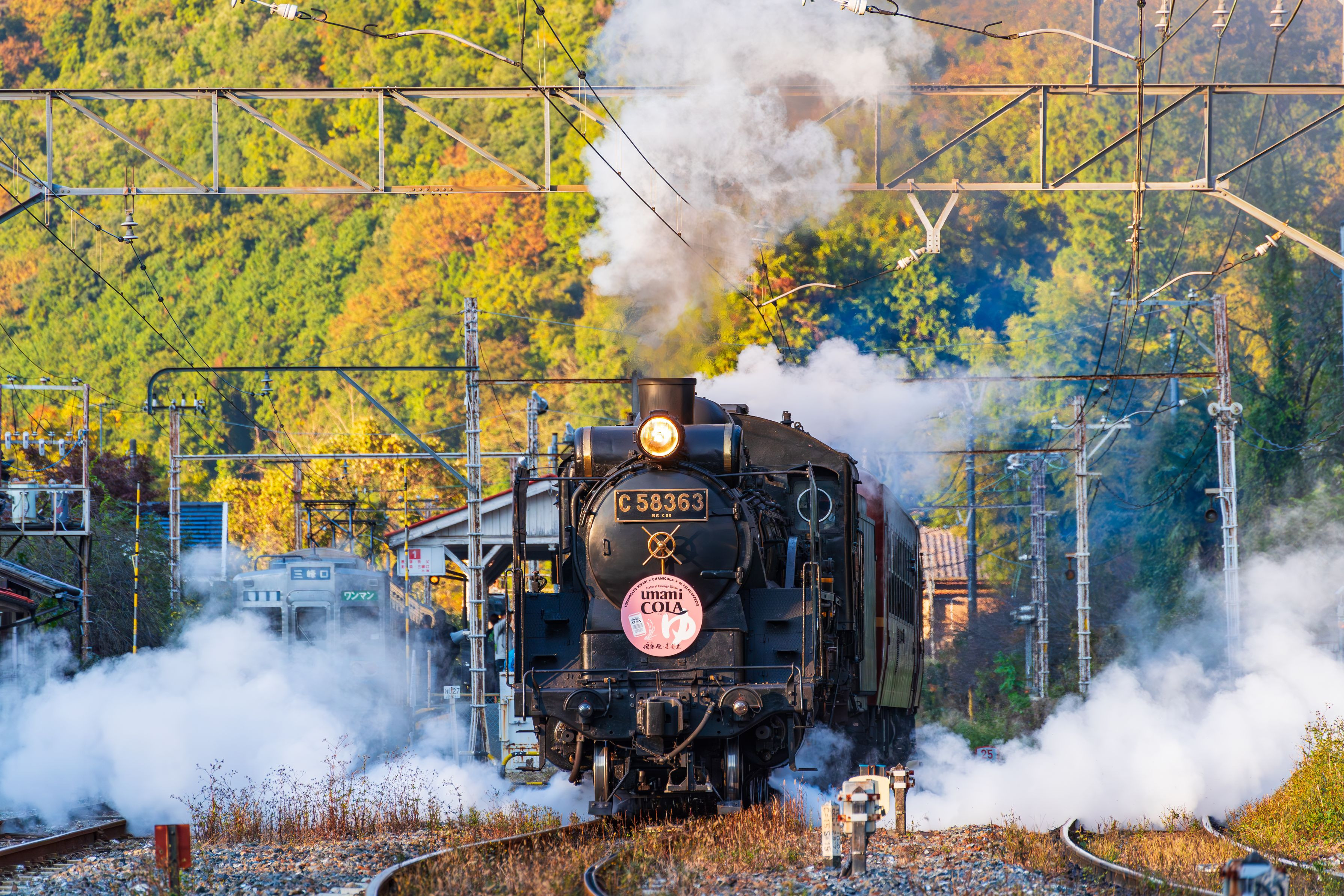 秋めいた山里のローカル駅を出発して全力で加速していきます。 秩父鉄道SLパレオエキスプレス 波久礼駅
