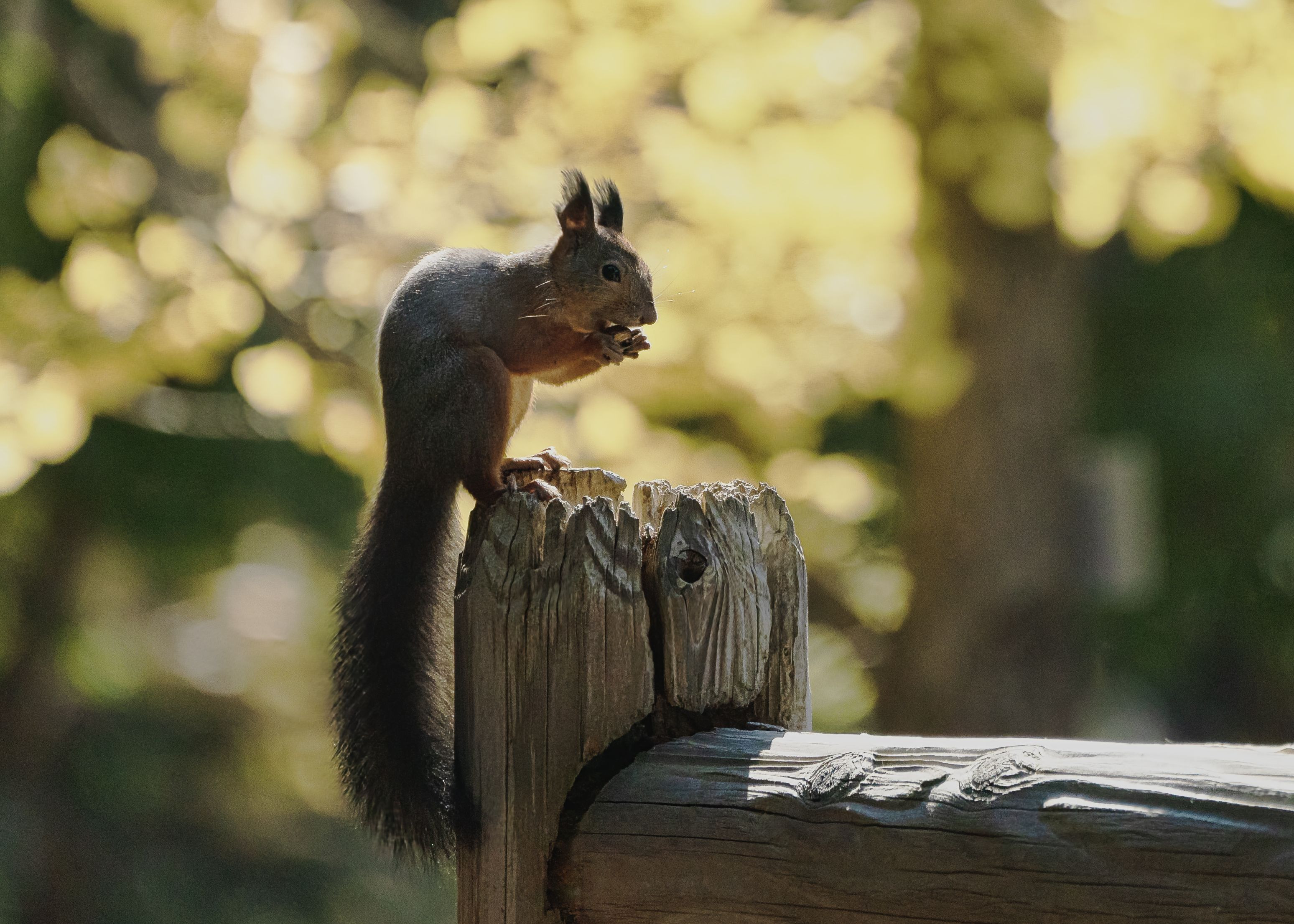 冬眠前のエゾリス。いつも何かを食べている。 立派なシッポが垂れている姿は珍しいかな?