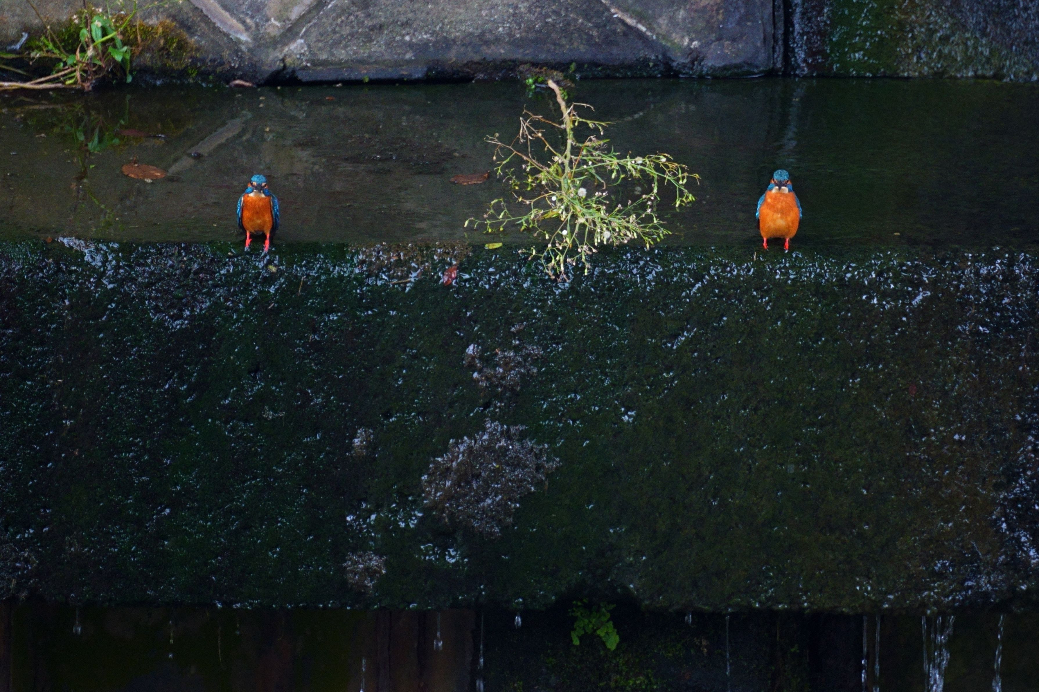 体型の違う2羽のカワセミ。 いい感じで正面を向いてくれました。