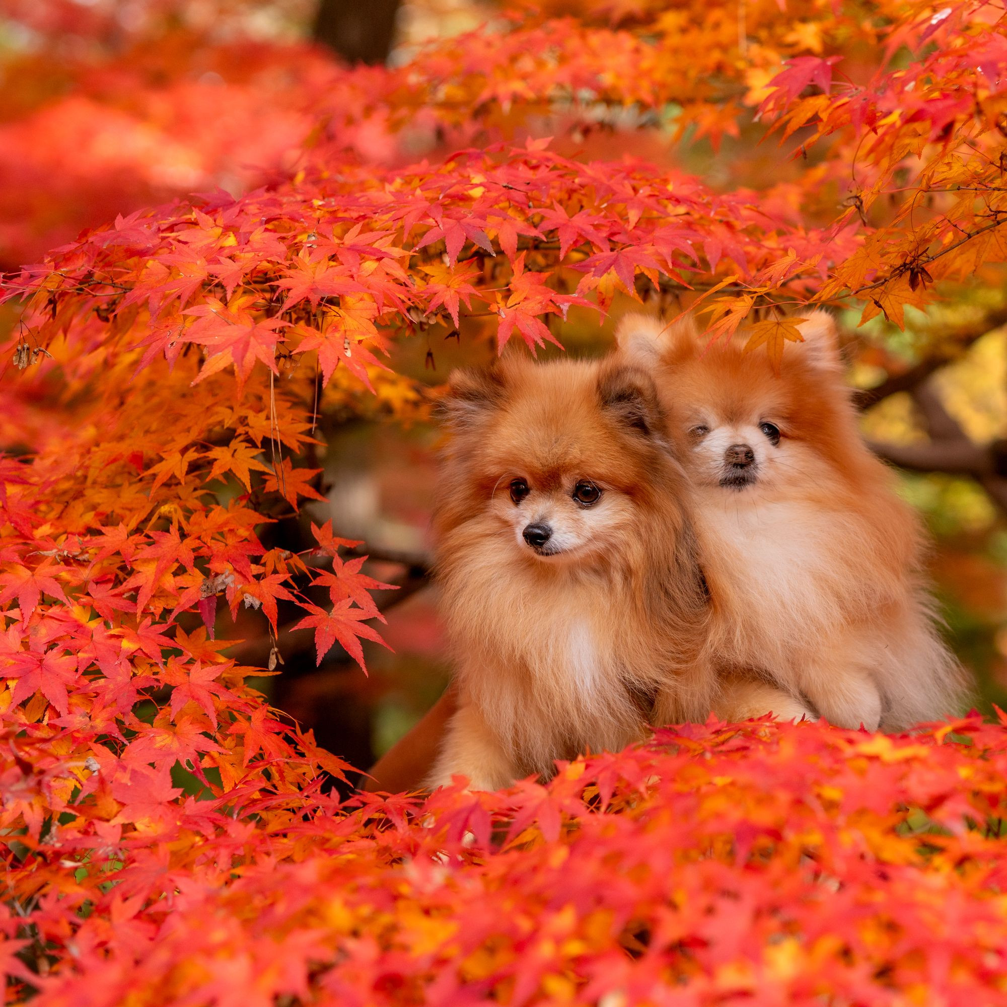 製品情報>My Sony>αcafe>紅葉とポメラニアン(こゆきさん)