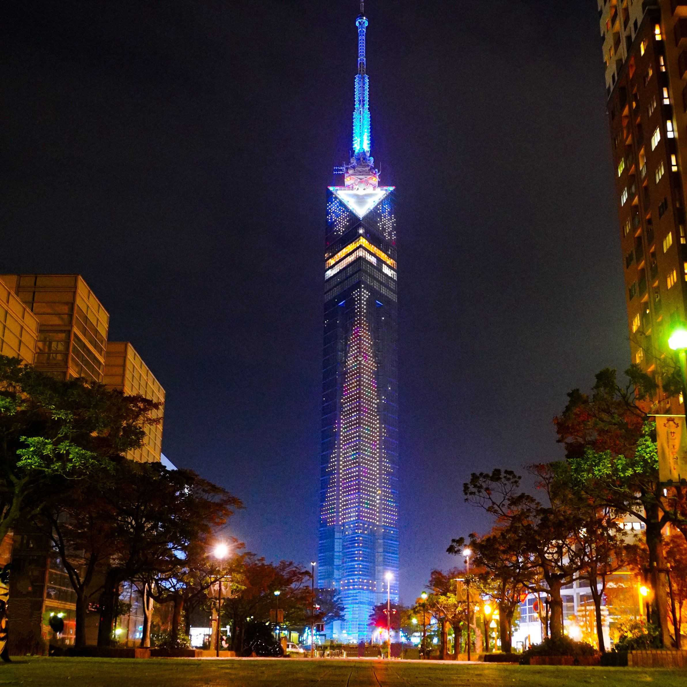 クリスマスツリーを描いた福岡タワー