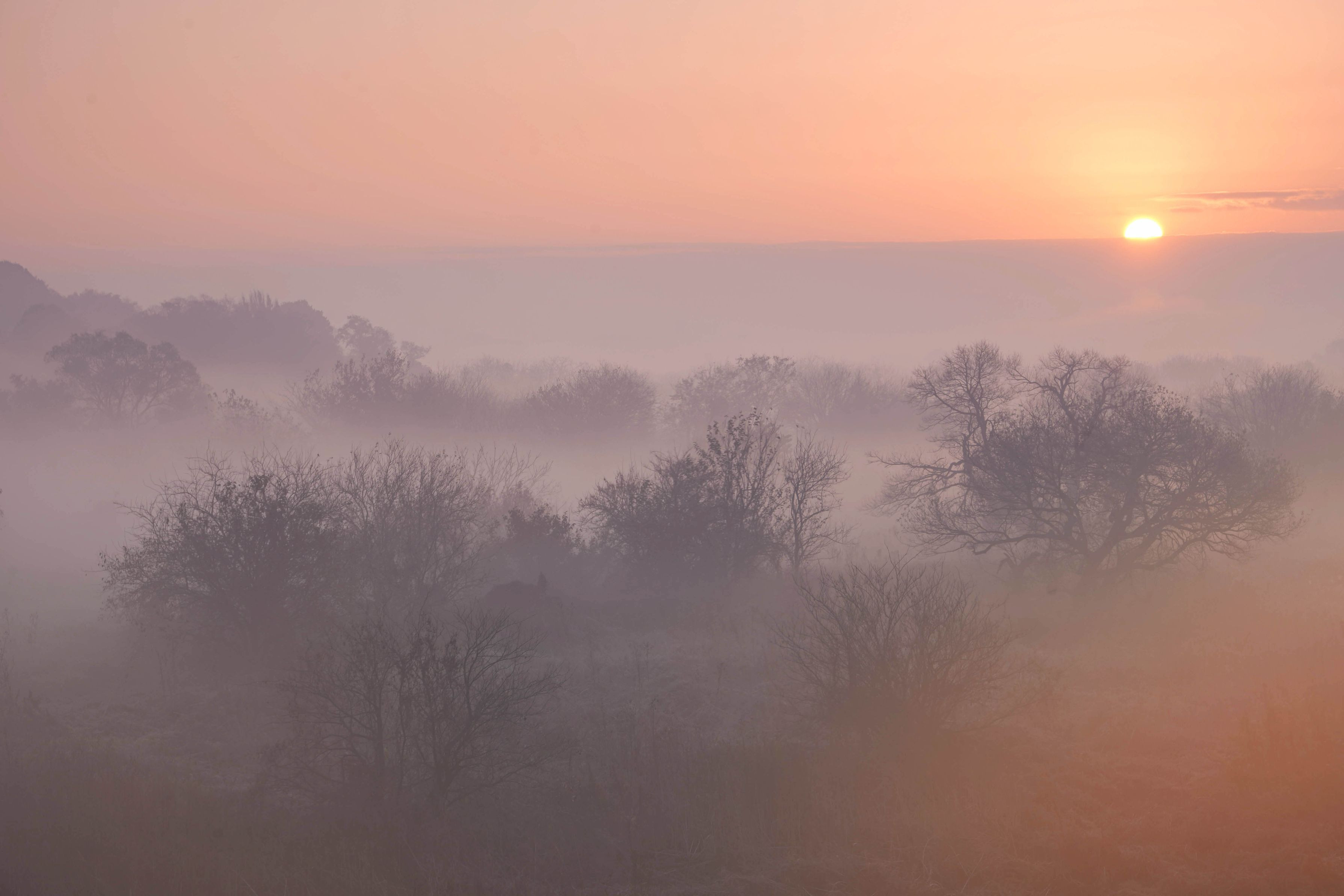 朝靄と朝陽が創り出す一時
