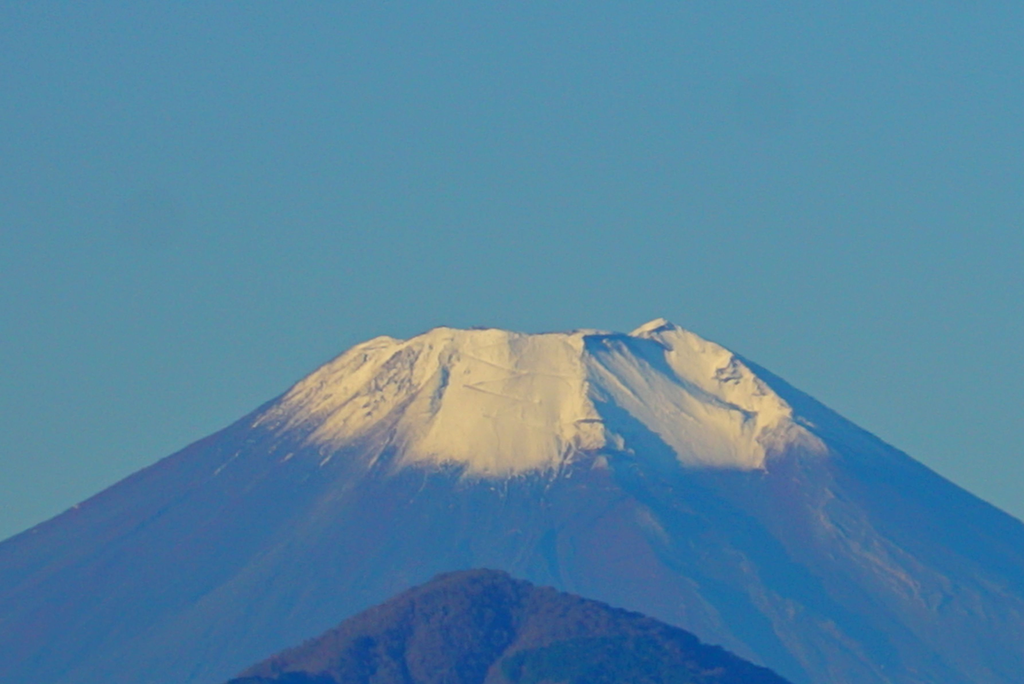 平年では五合目から上は雪化粧なのですが、今朝は富士山の八合目から九合目の間から上の雪化粧が見えました。