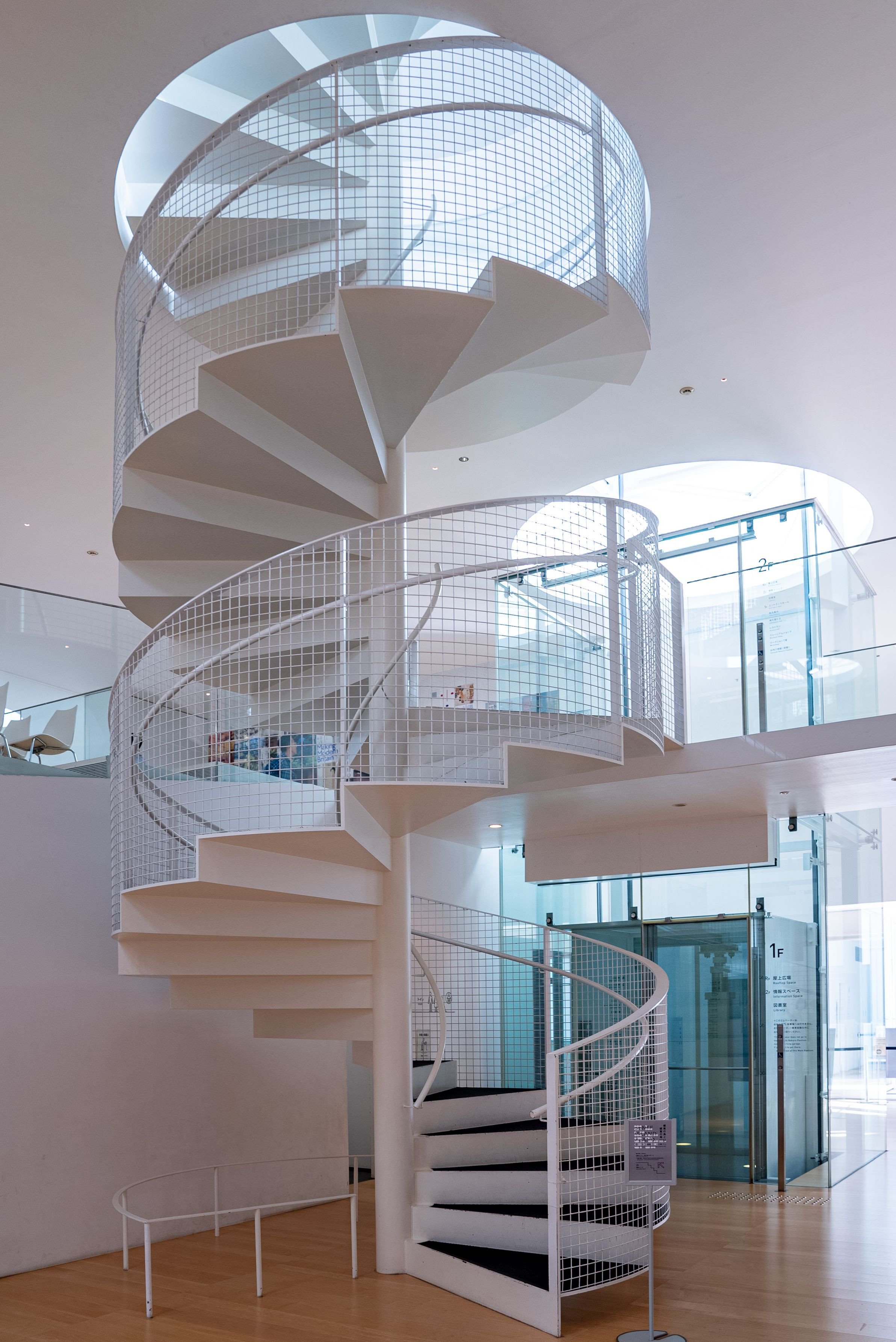 横須賀美術館内の螺旋階段。 シンプルで美しく、機能的な螺旋階段は、屋上まで続く。