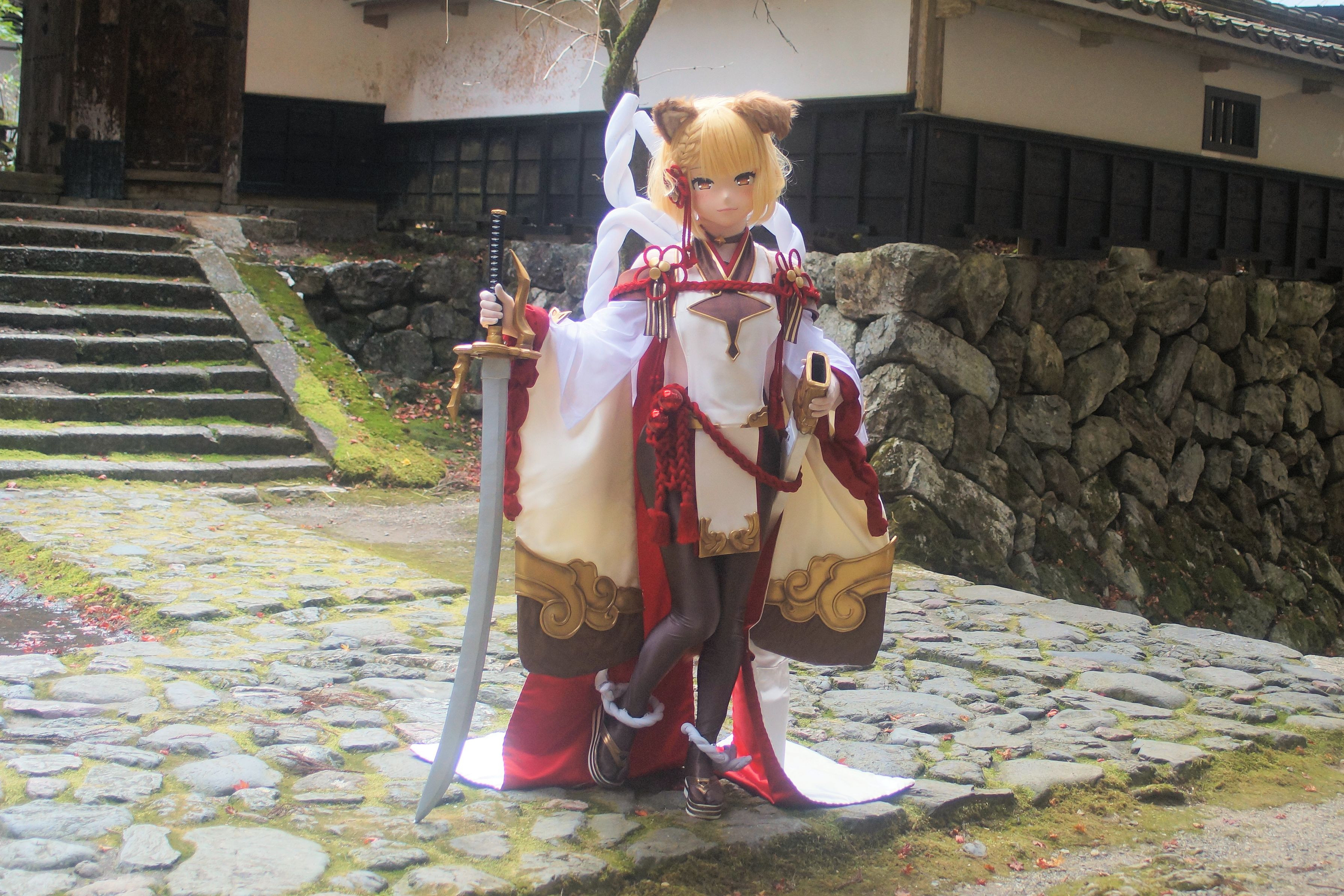 紅葉を撮影に出かけた先で見かけたキャラクターです? 専属のカメラマンさんが居られたので声を掛けたら撮影許可を頂きました。 何でもゲームのキャラクターらしいのですがお仕事の邪魔をする気はありませんでしたので 詳しい話は聞けませんでした。ご存じの方がお見えでしたらご教授下さい。