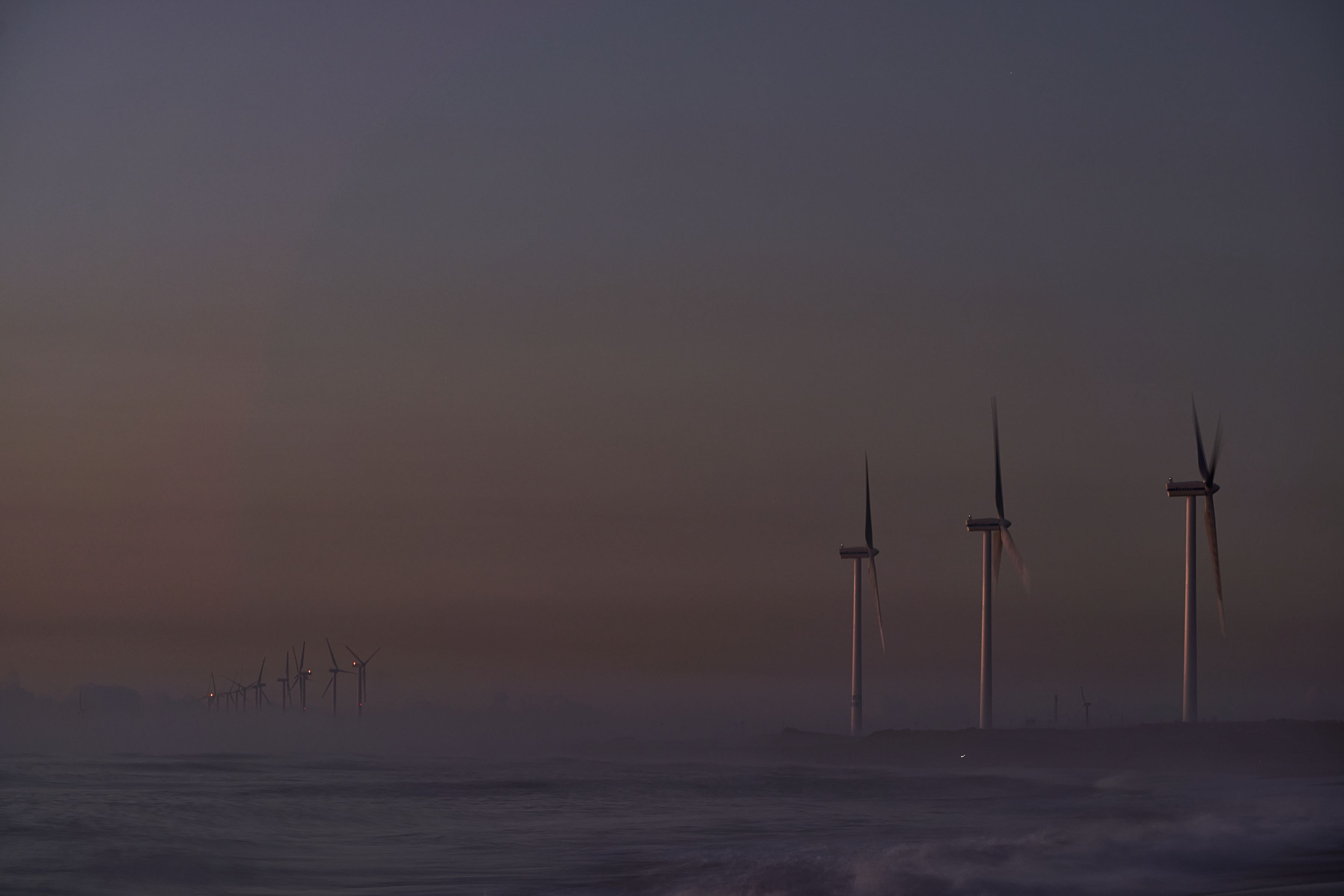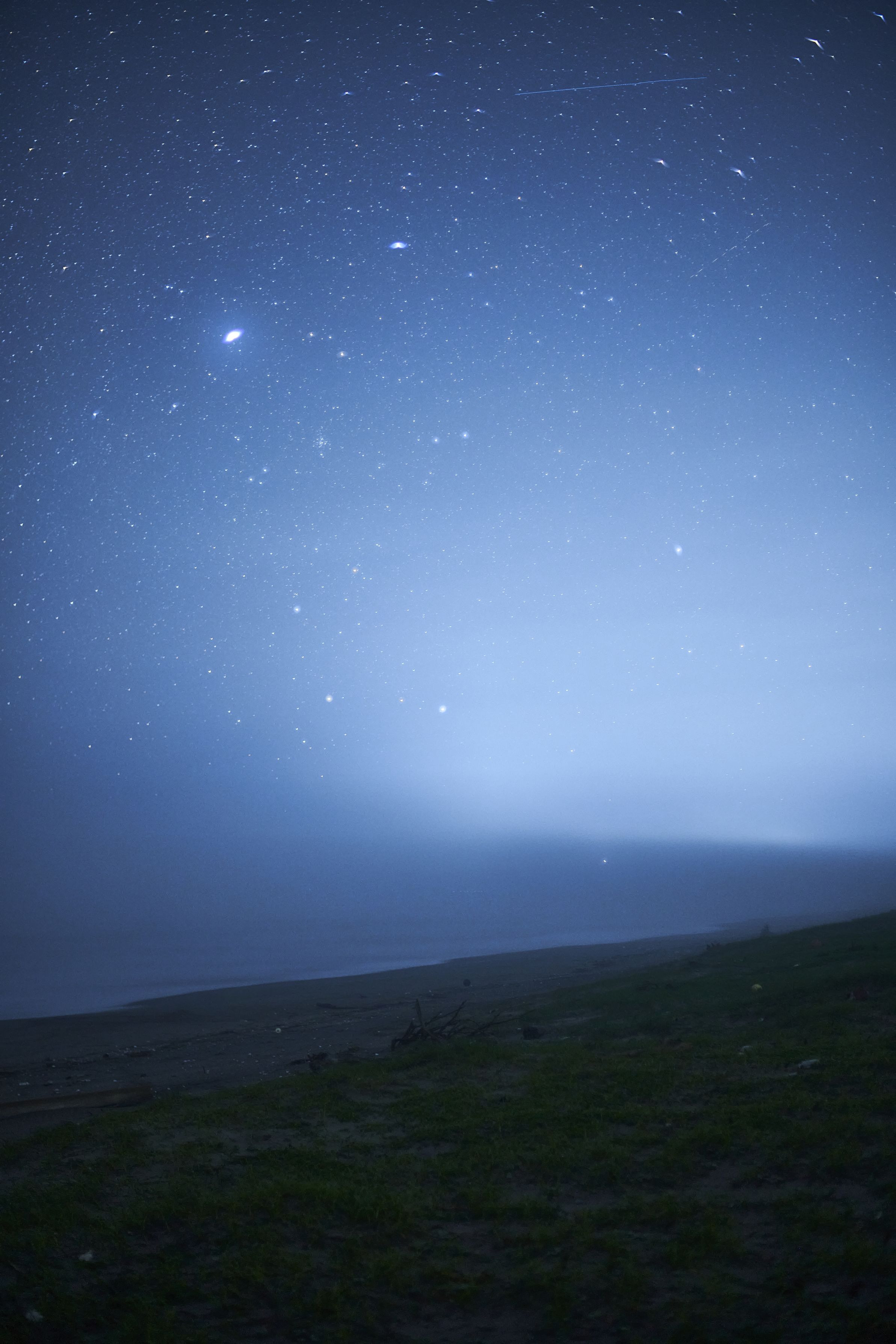 風車の見える浜辺、星降る夜