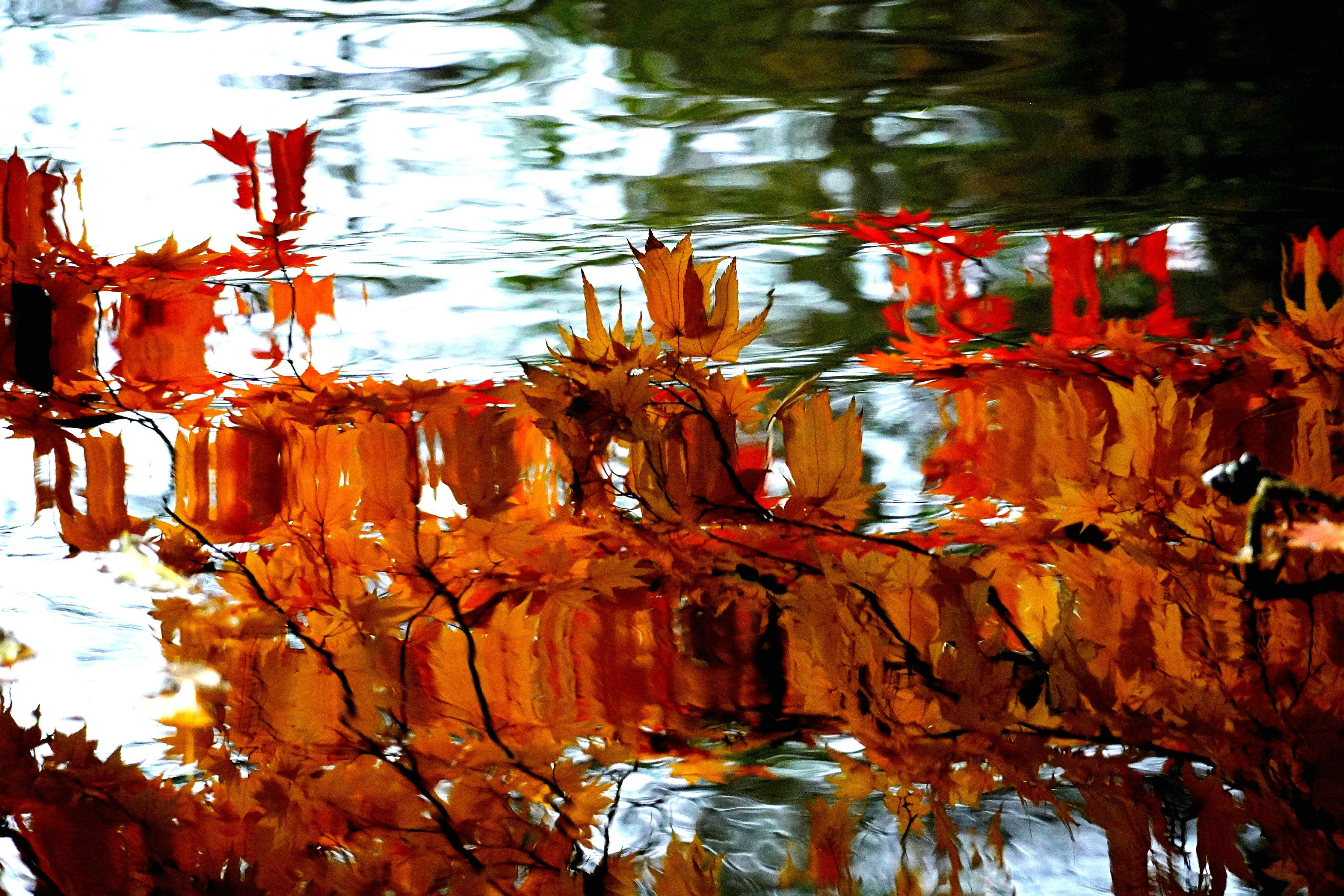 水面に揺れる紅葉です。