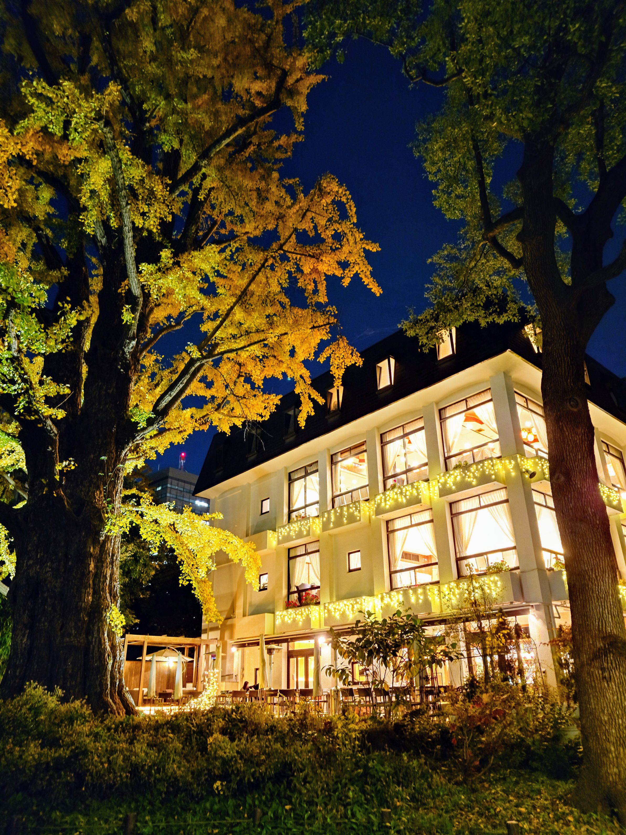 銀杏の黄葉と夜の松本楼。