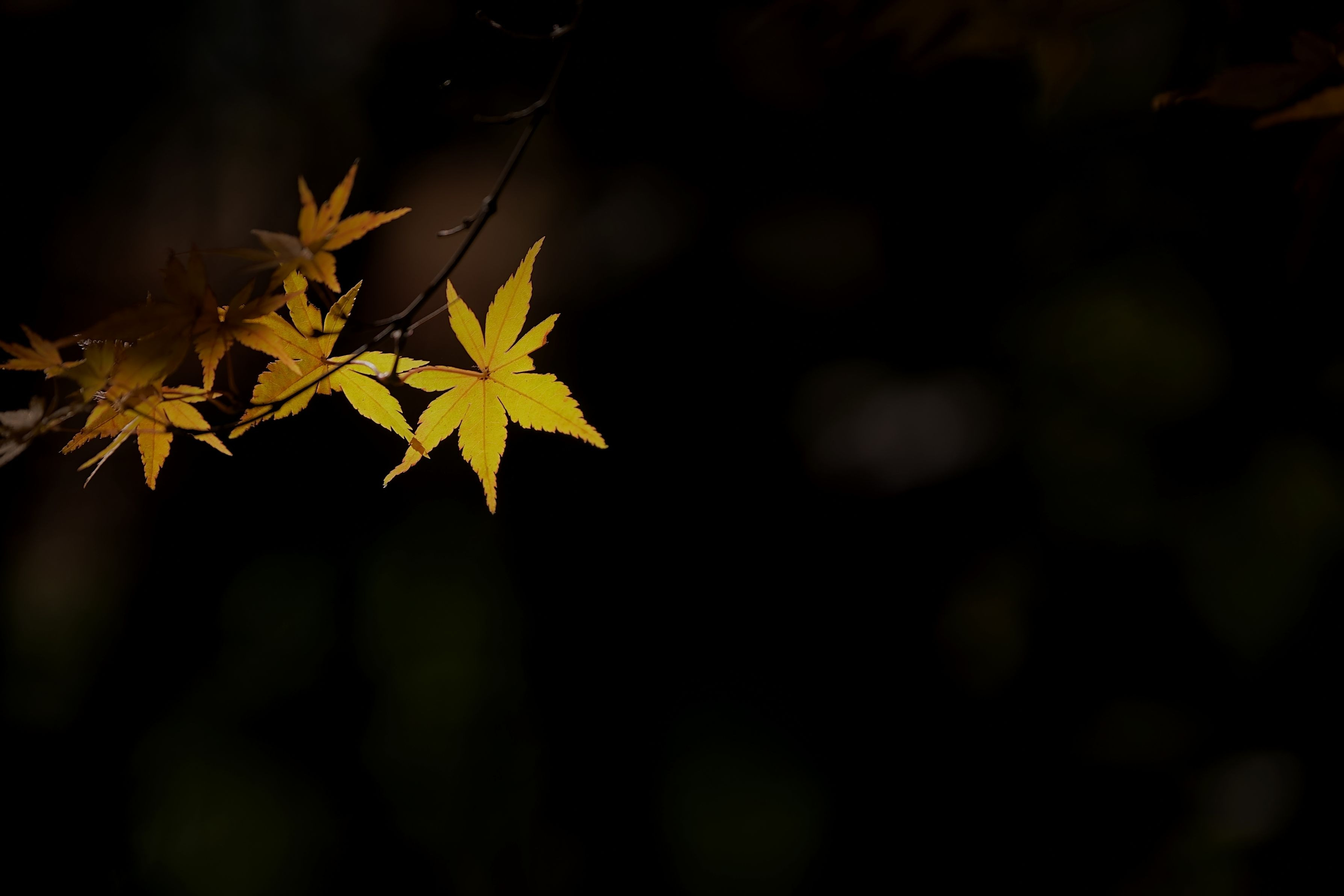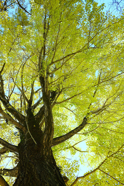 まだまだ頑張っているモミジとイチョウをみつけました。
