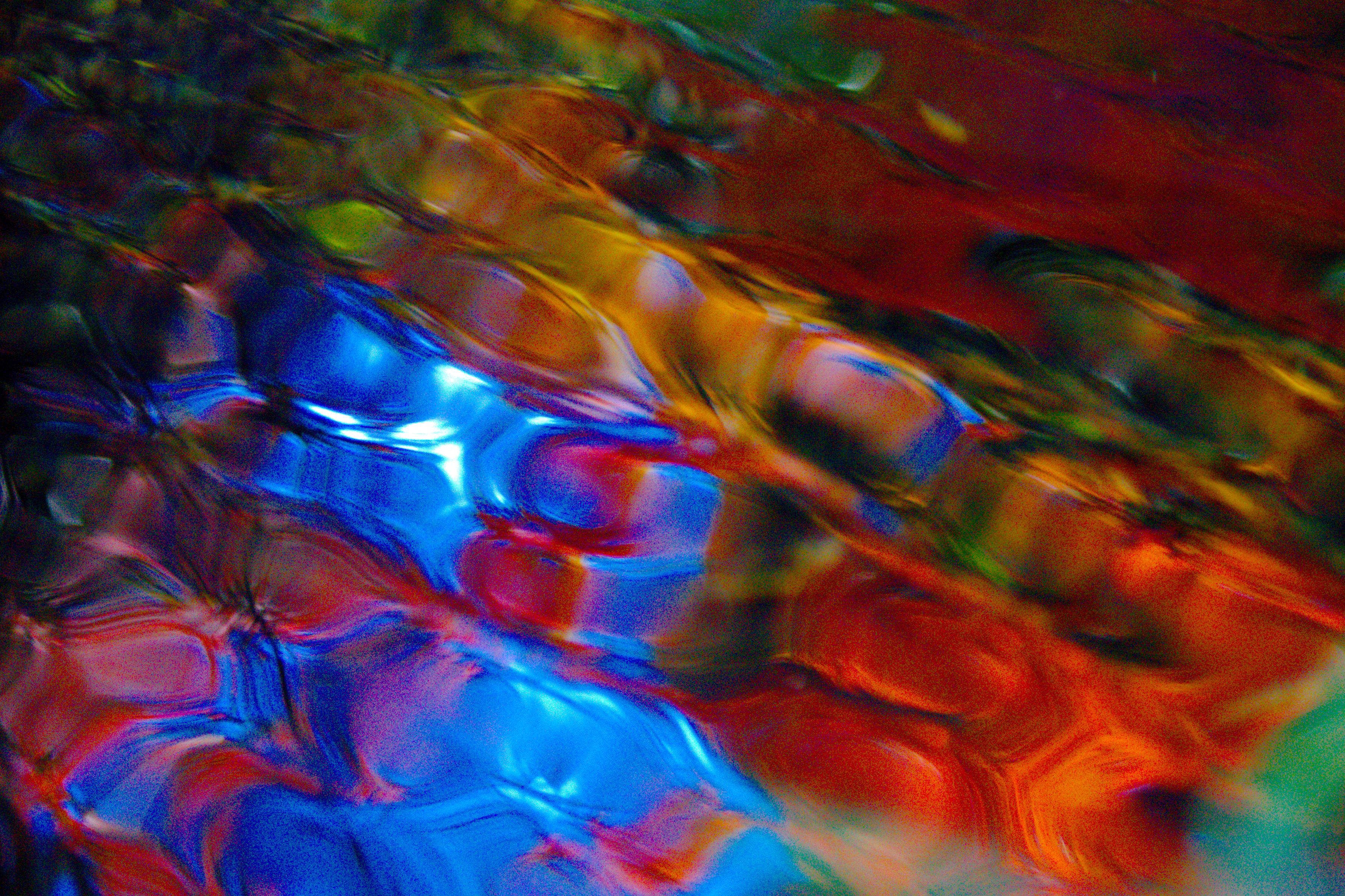 水面に映る紅葉が波で揉まれてその色を残したまま幻想的な模様に変化。