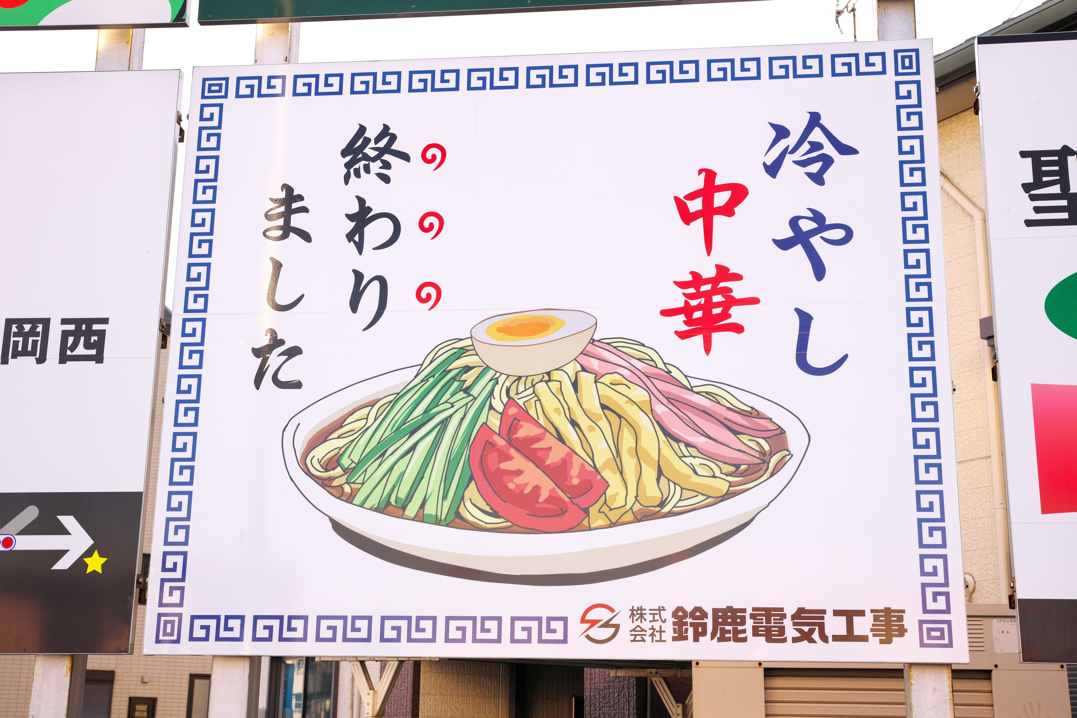 冷やし中華終わりました? しかも電気工事屋さんの広告??