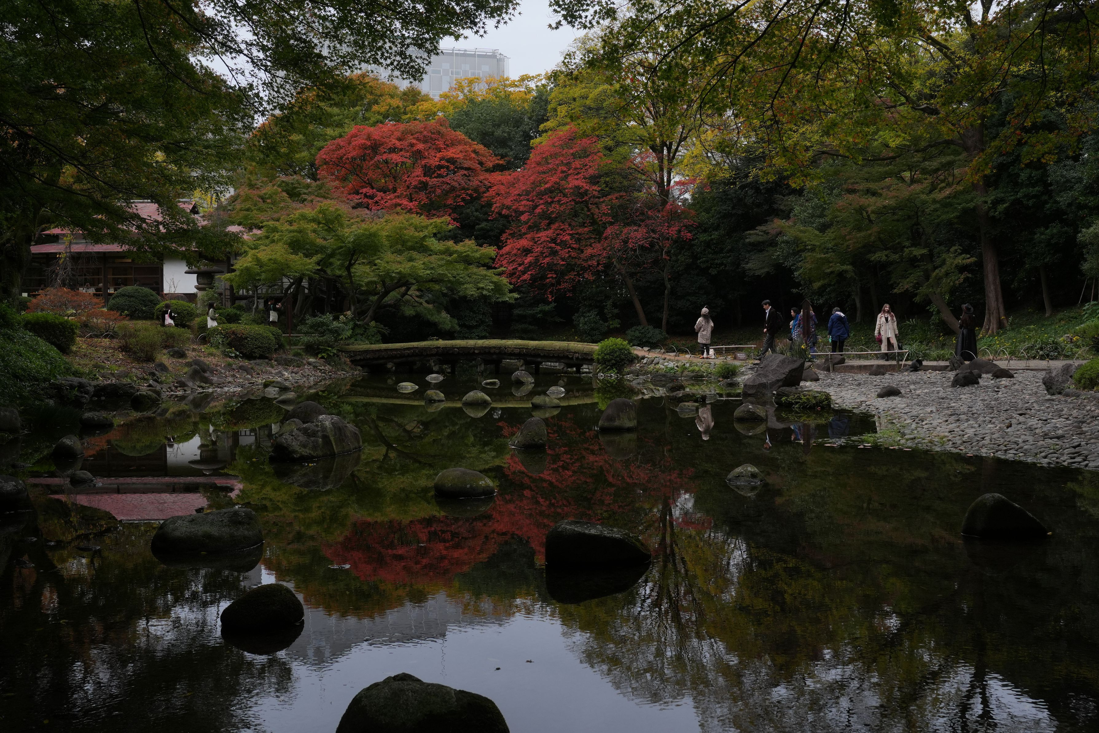 東京都小石川後楽園で撮影しました。 曇りでしたが、風がなく紅葉がきれいに反射していました。