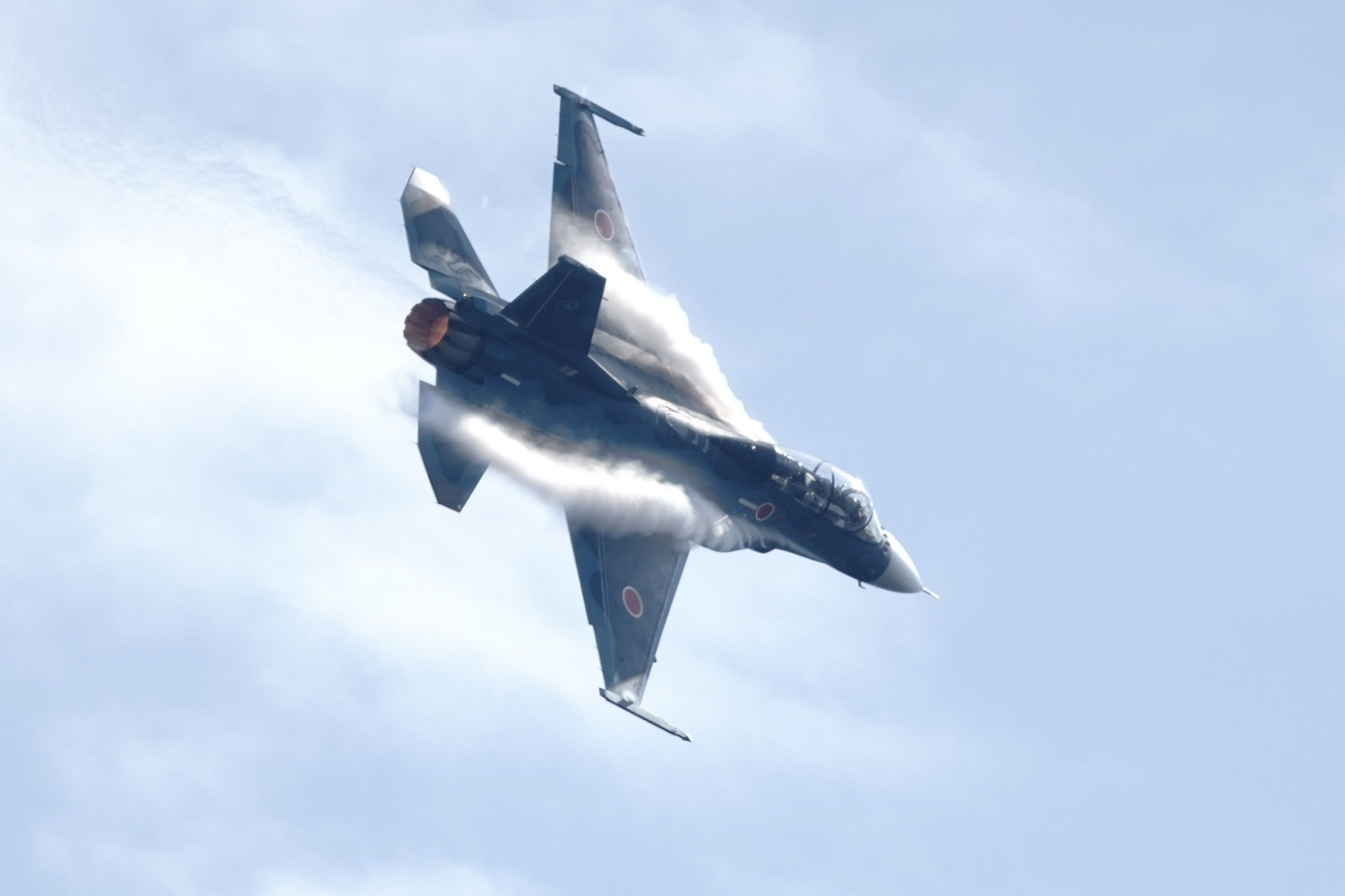 岐阜基地でのF-2機動飛行です。 湿度も高く、モクモクでした。