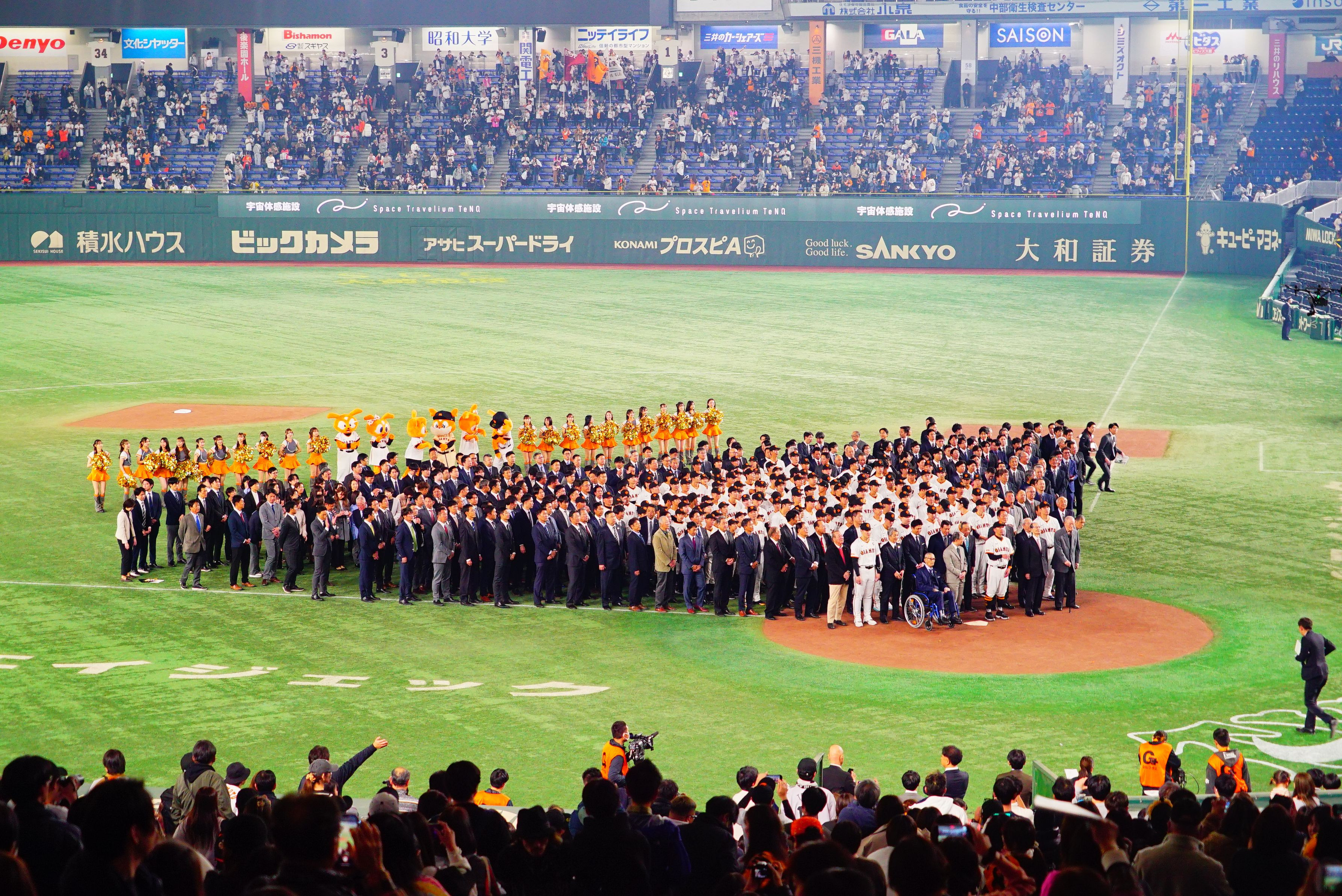 巨人ファン感謝デー【 ジャイアンツ・ファンフェスタ2024 】90周年特別セレモニー ドローンによる記念撮影