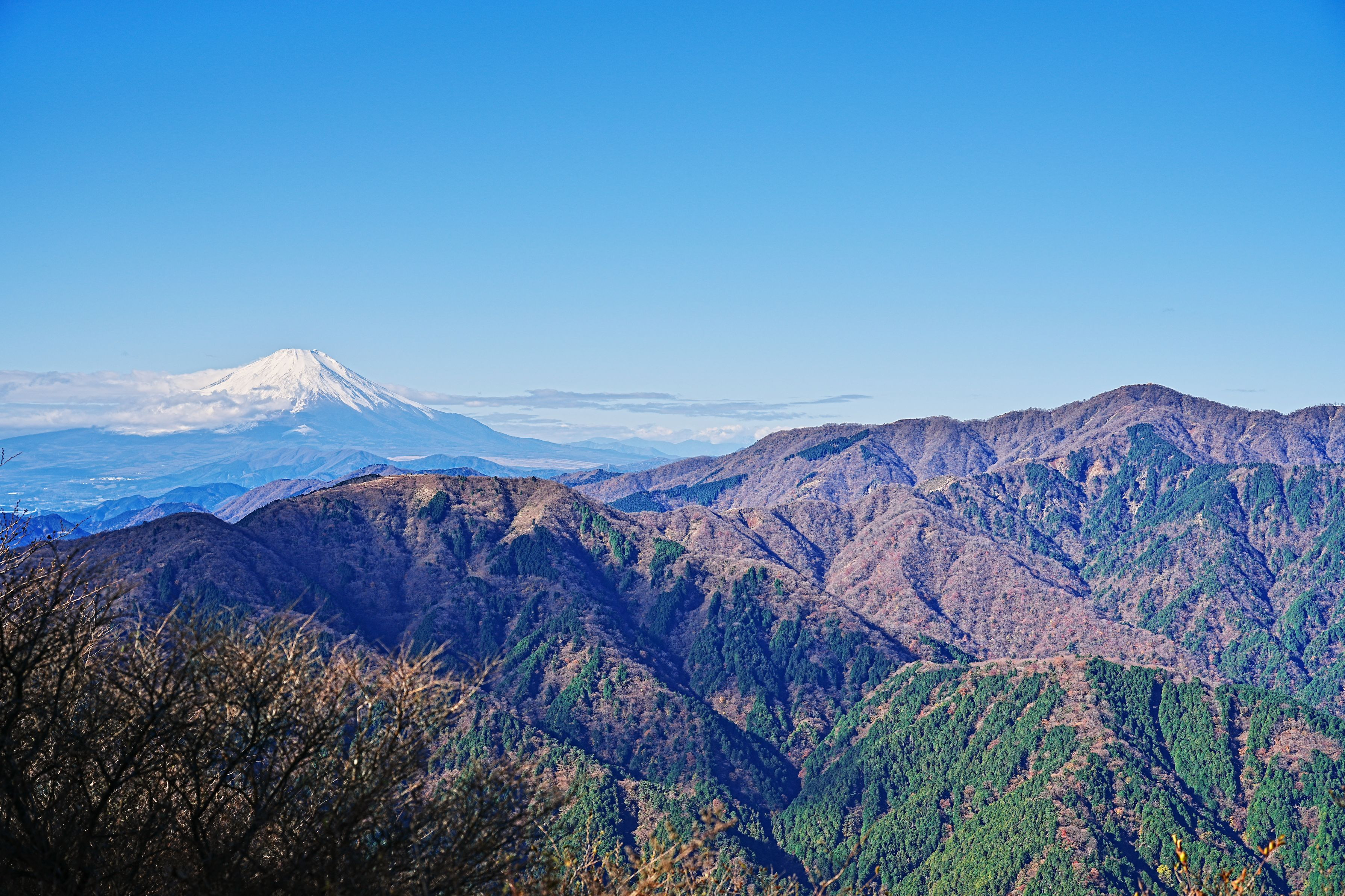 地元大山(おおやま)の山頂からの景色です。右の方には10月に初めて登った塔ノ岳の尊仏山荘も見えています。こんなに綺麗な景色を見られて山登りが楽しくなりました。