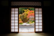 古知谷 阿弥陀寺。本堂から紅葉した庭園を望む。