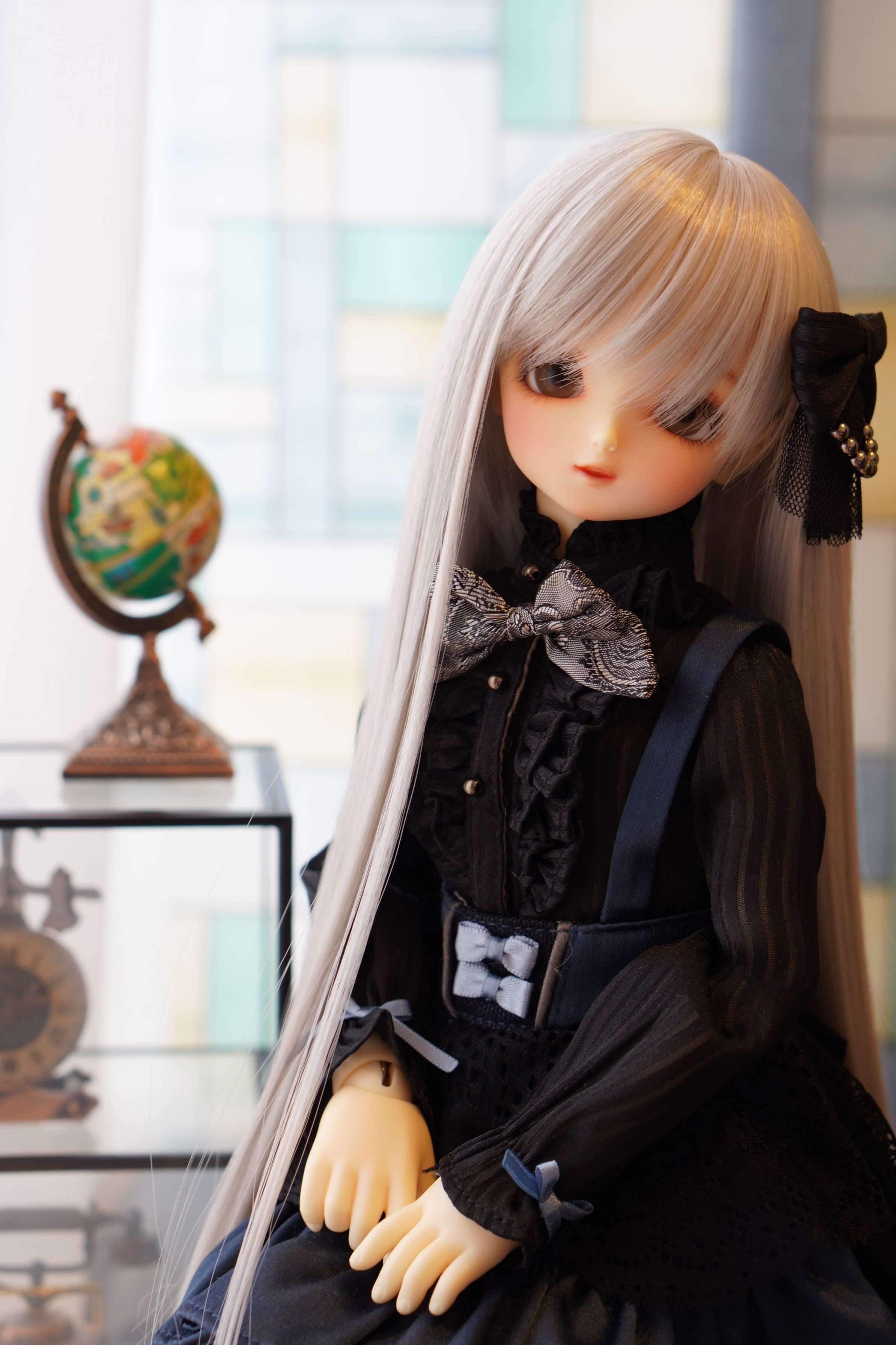 ドール(球体関節人形)です。この衣装はゴシックロリィタというジャンルになるのでしょうか。ドール撮影は衣装や小物、背景に気を使います…