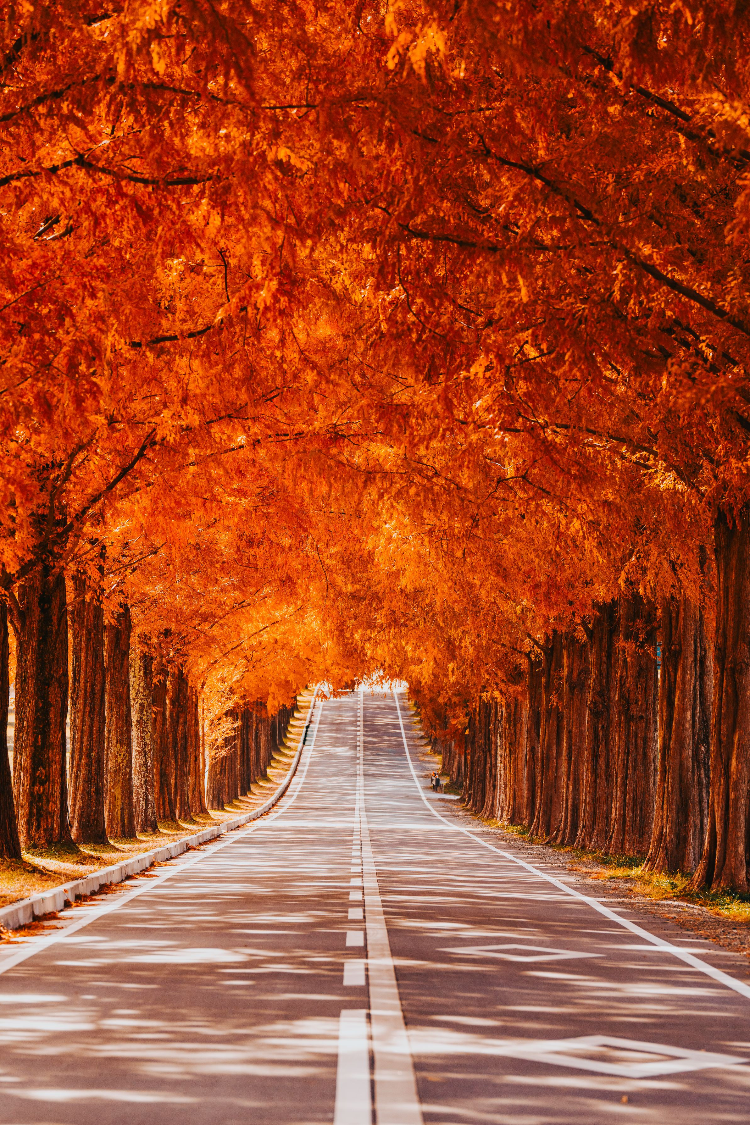 滋賀にあるメタセコイア並木です 太陽の光でオレンジに輝いてました