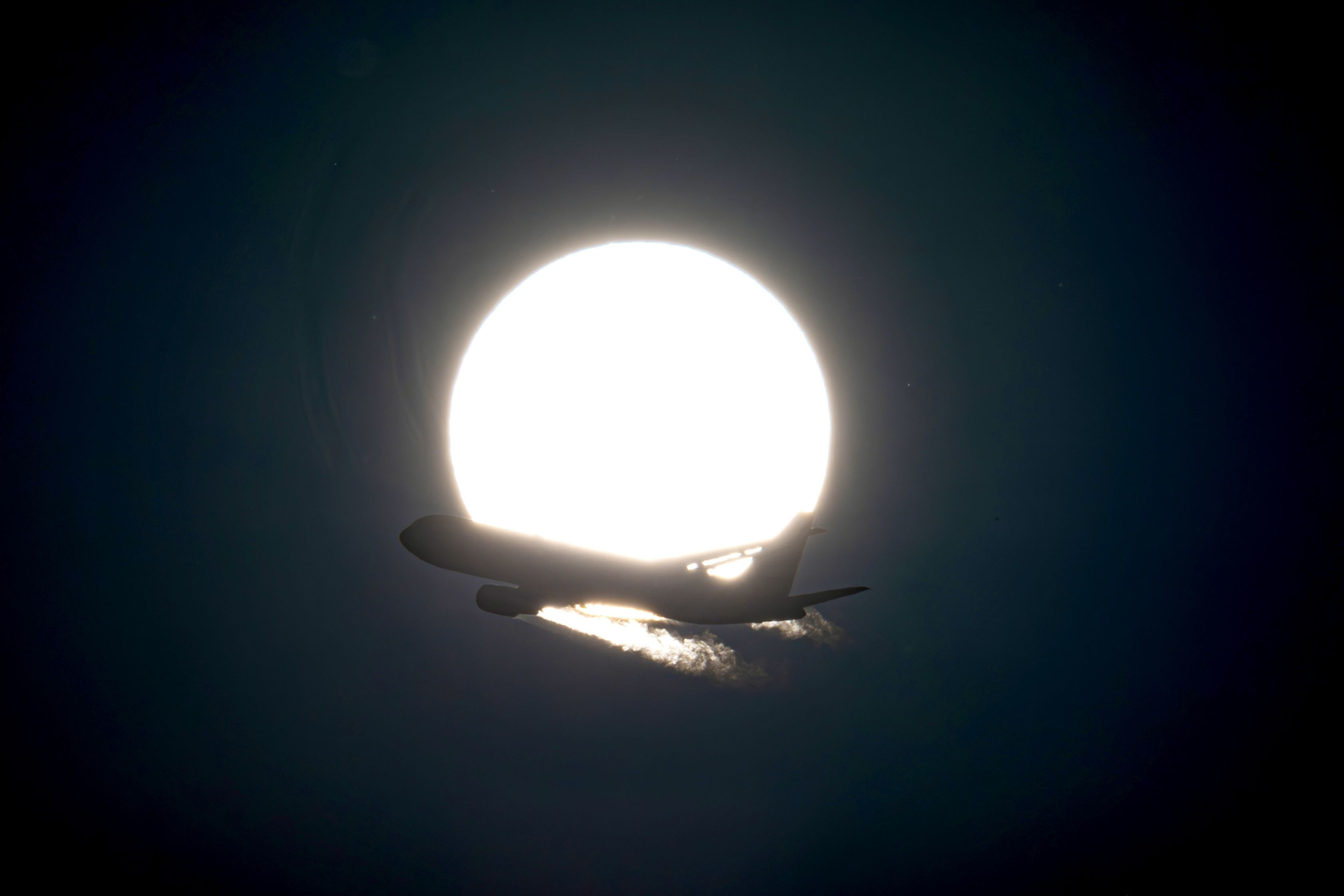 羽田空港から離陸した飛行機が太陽を横切った瞬間