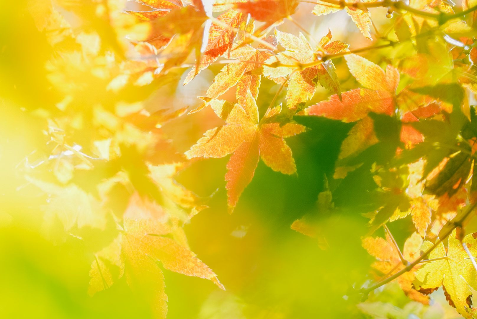 自宅の紅葉。朝のヒカリをうけてキラキラしていたので撮影しました。
