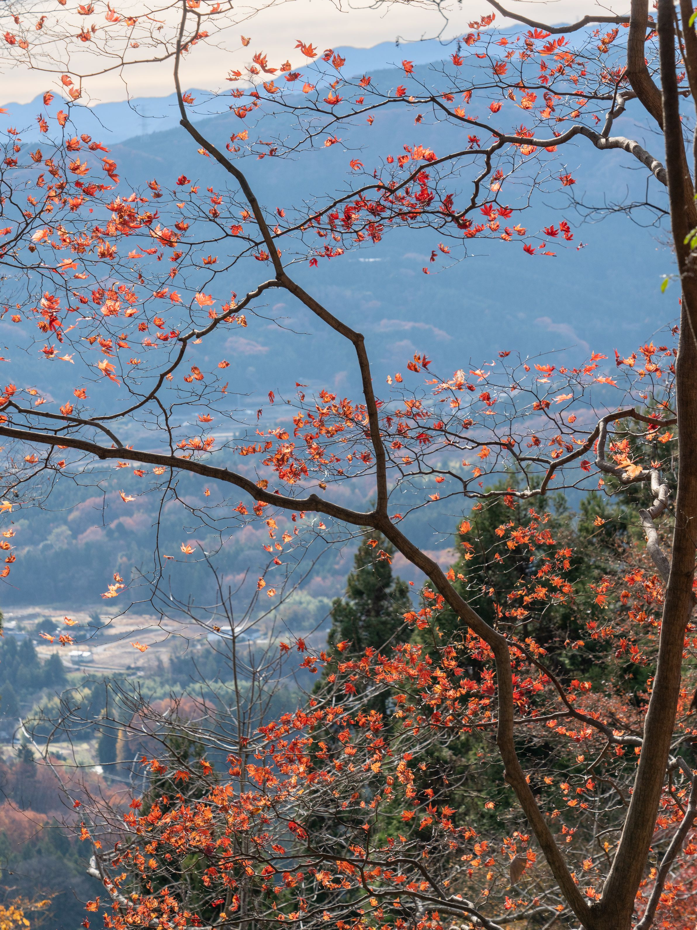 妙義山の山腹から 紅葉終盤の光景を表現しました。