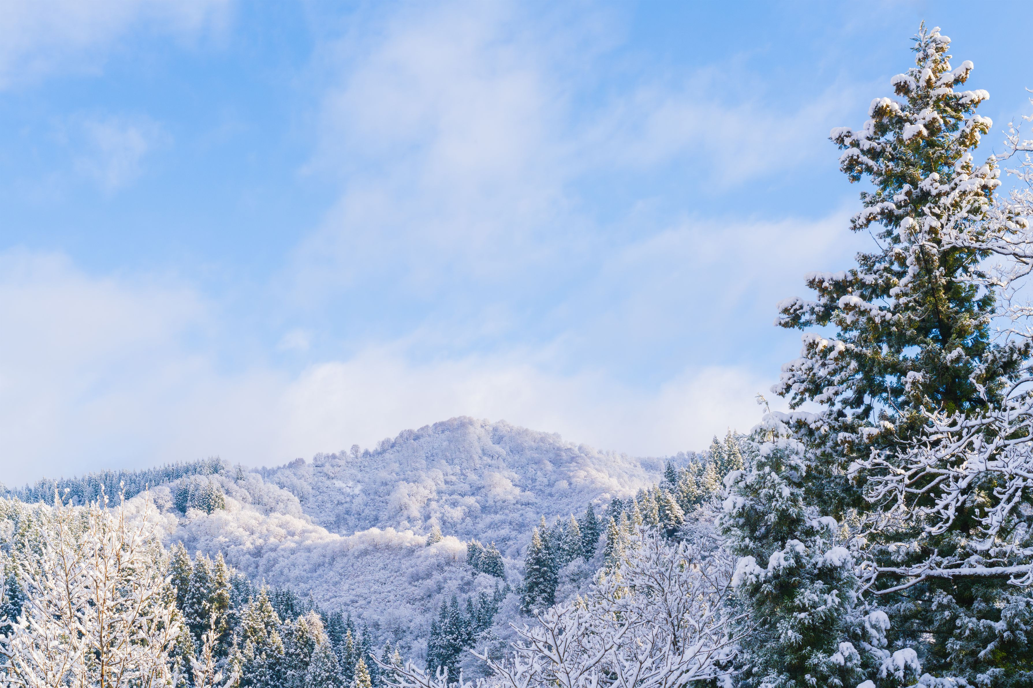 雪雲が晴れて少しだけ覗いた晴れ間の風景。