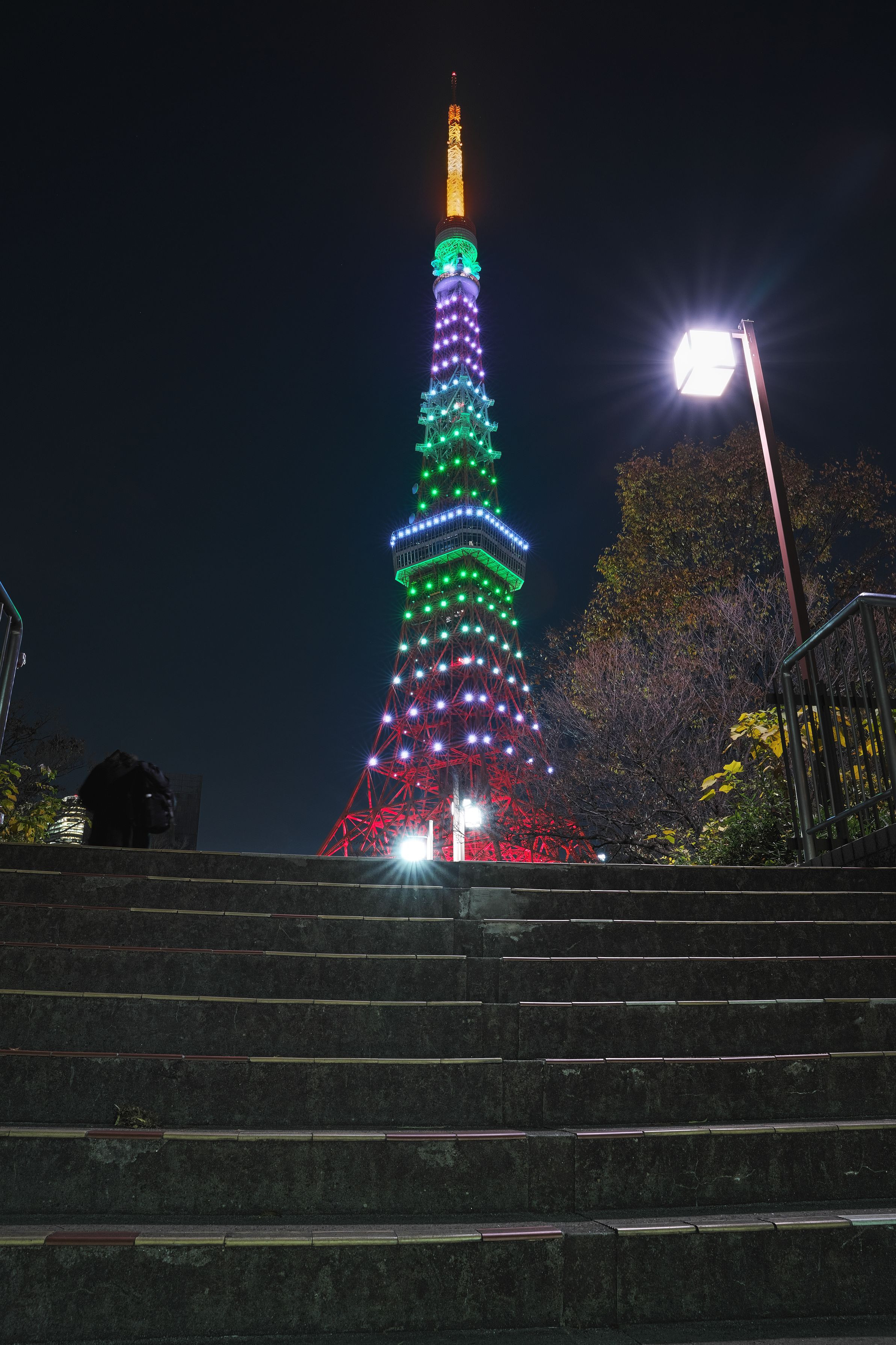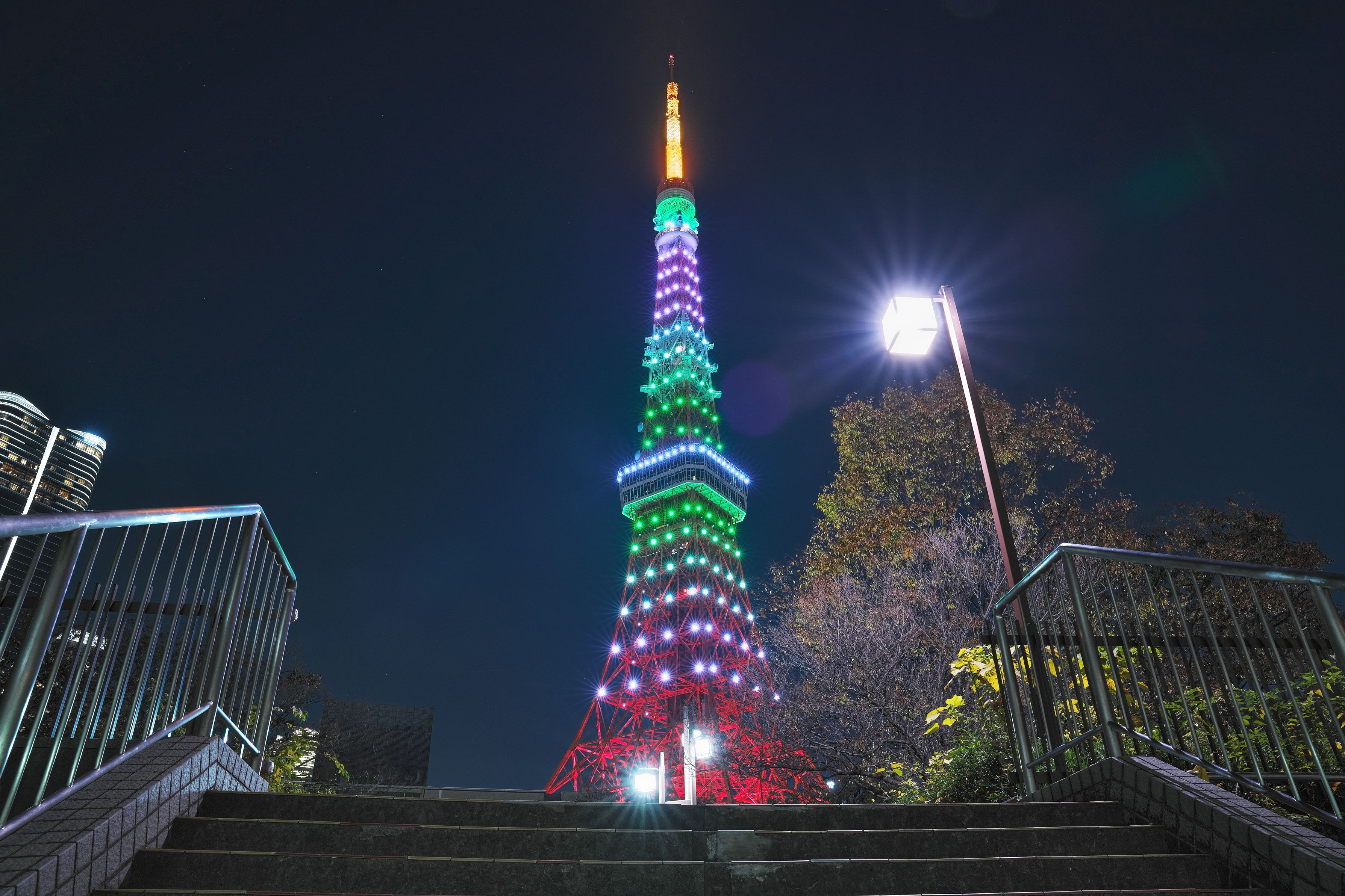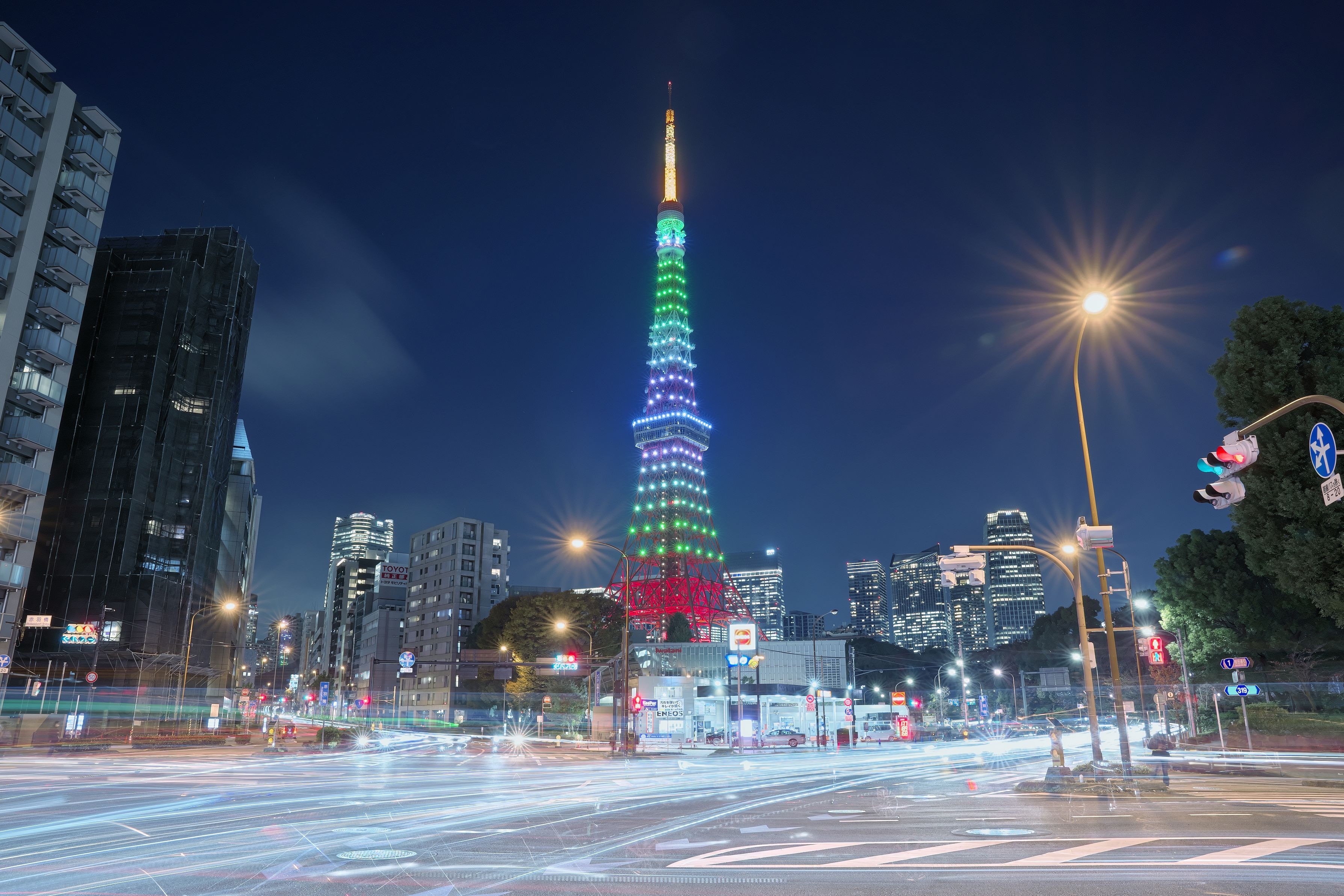 常盤色にライトアップされた東京タワーを撮影してみました。