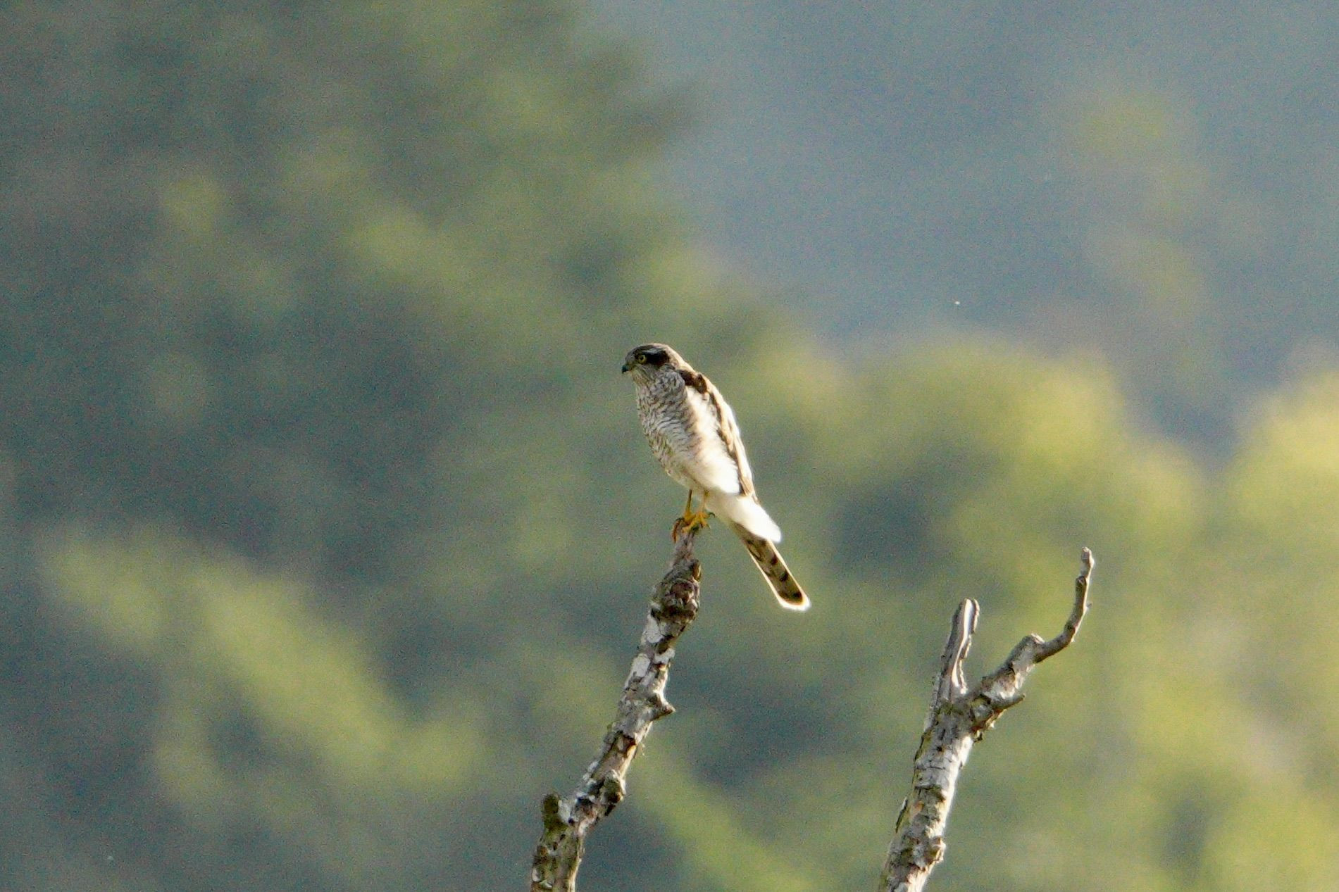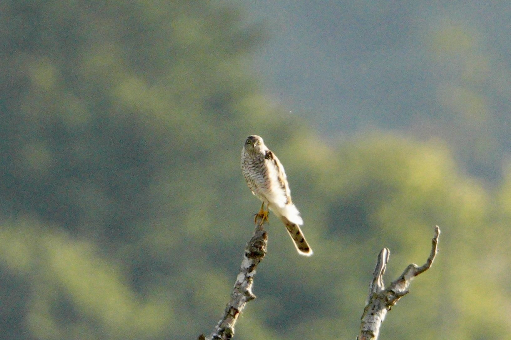 対岸の樹上にハイタカが・・・ 向こうもこっち見ているよね、あるあるです