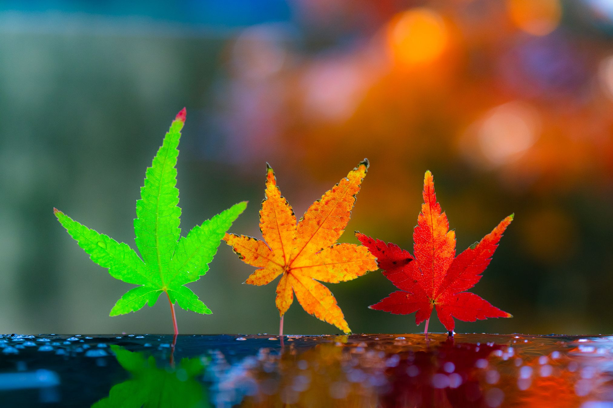 我が家の紅葉。いろんな色の紅葉が混在していて可愛いかったので並べてみました。