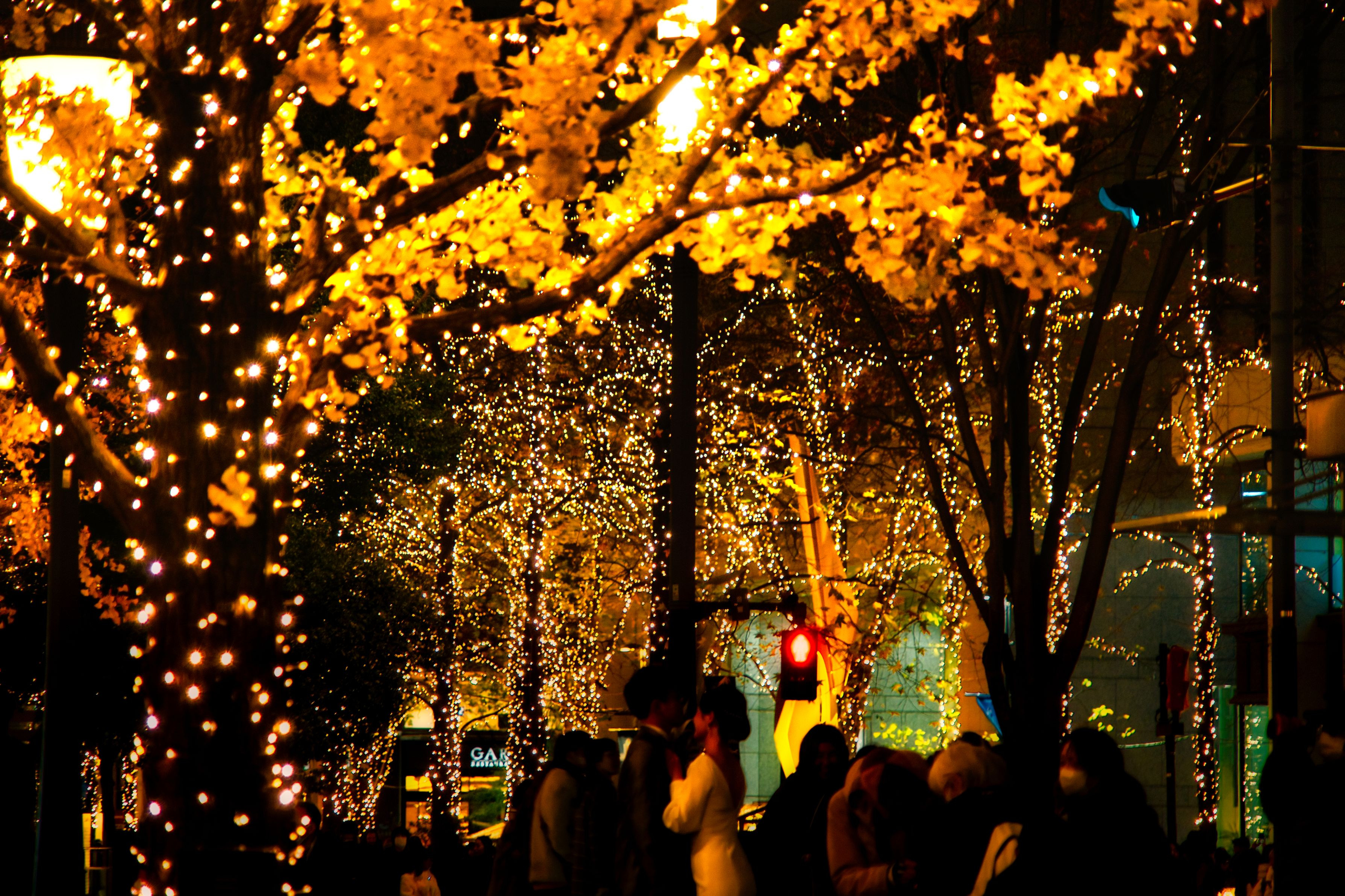 イルミネーション:光が主役・銀杏並木が輝く風景 光以外はシルエットで表現しました。 #東京都#