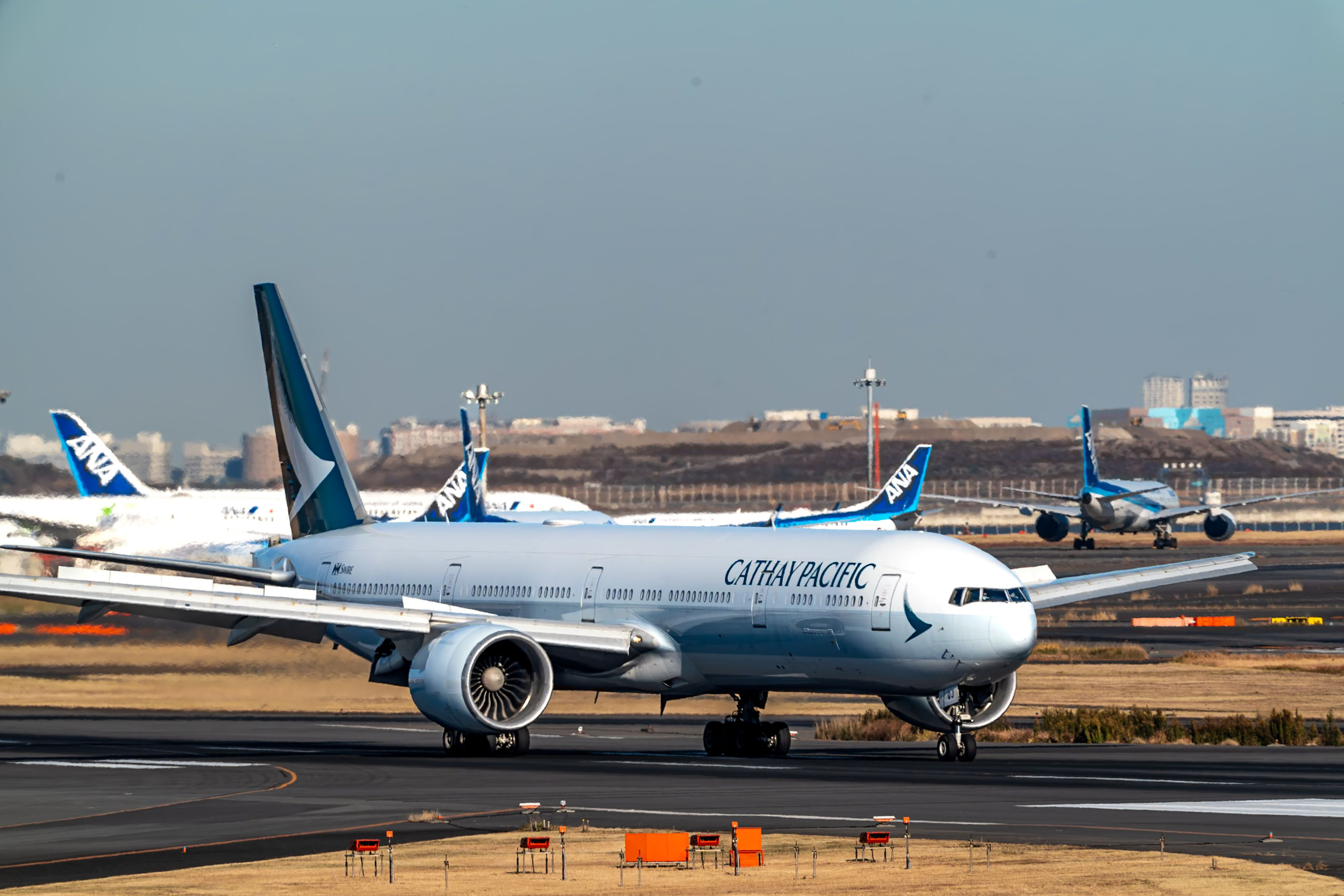 晴天の冬の朝、羽田の日常風景