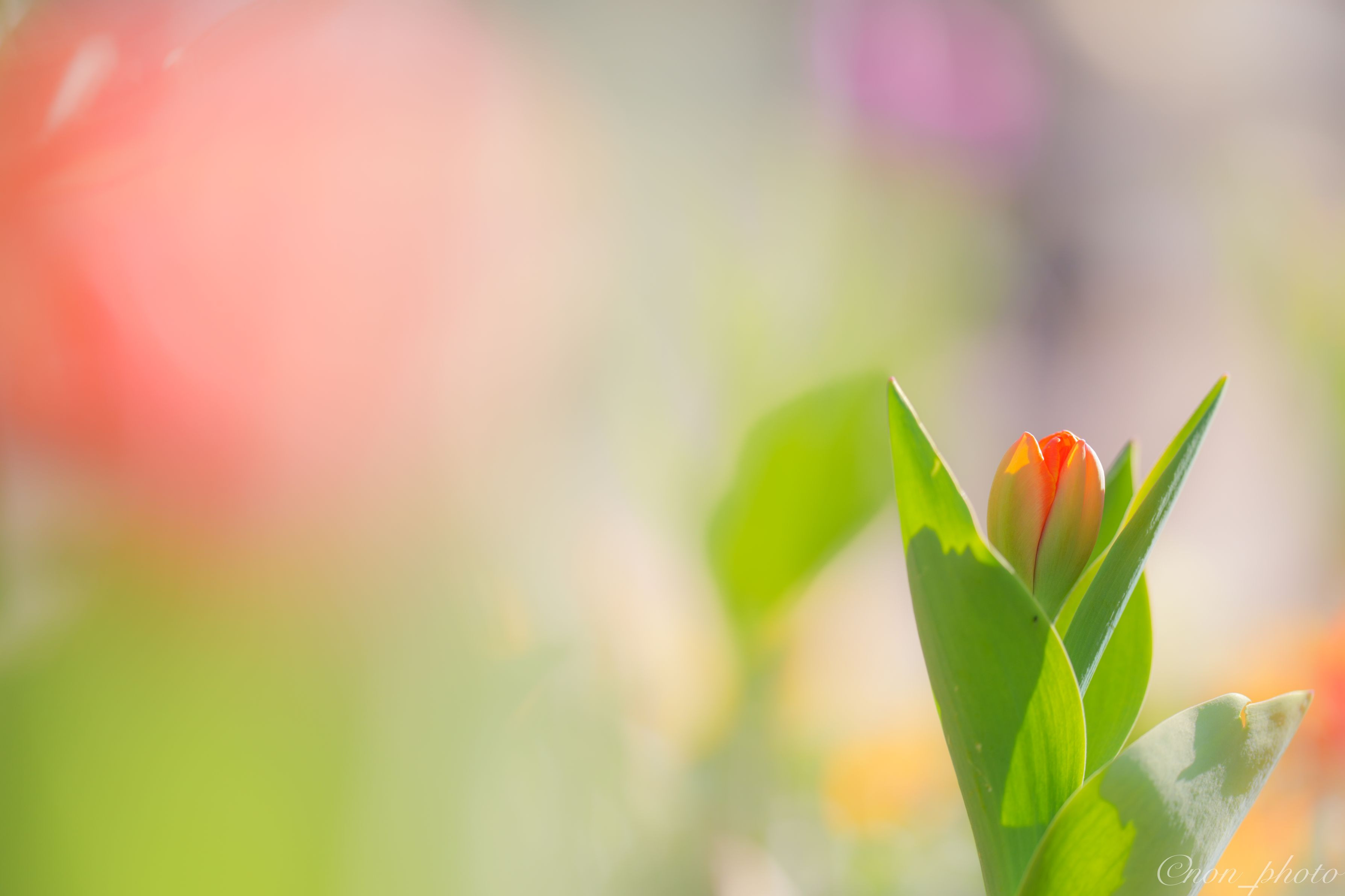 アイスチューリップ 花開く前のチューリップの蕾が葉っぱに優しく包まれてる姿がとても可愛くて撮影しました。