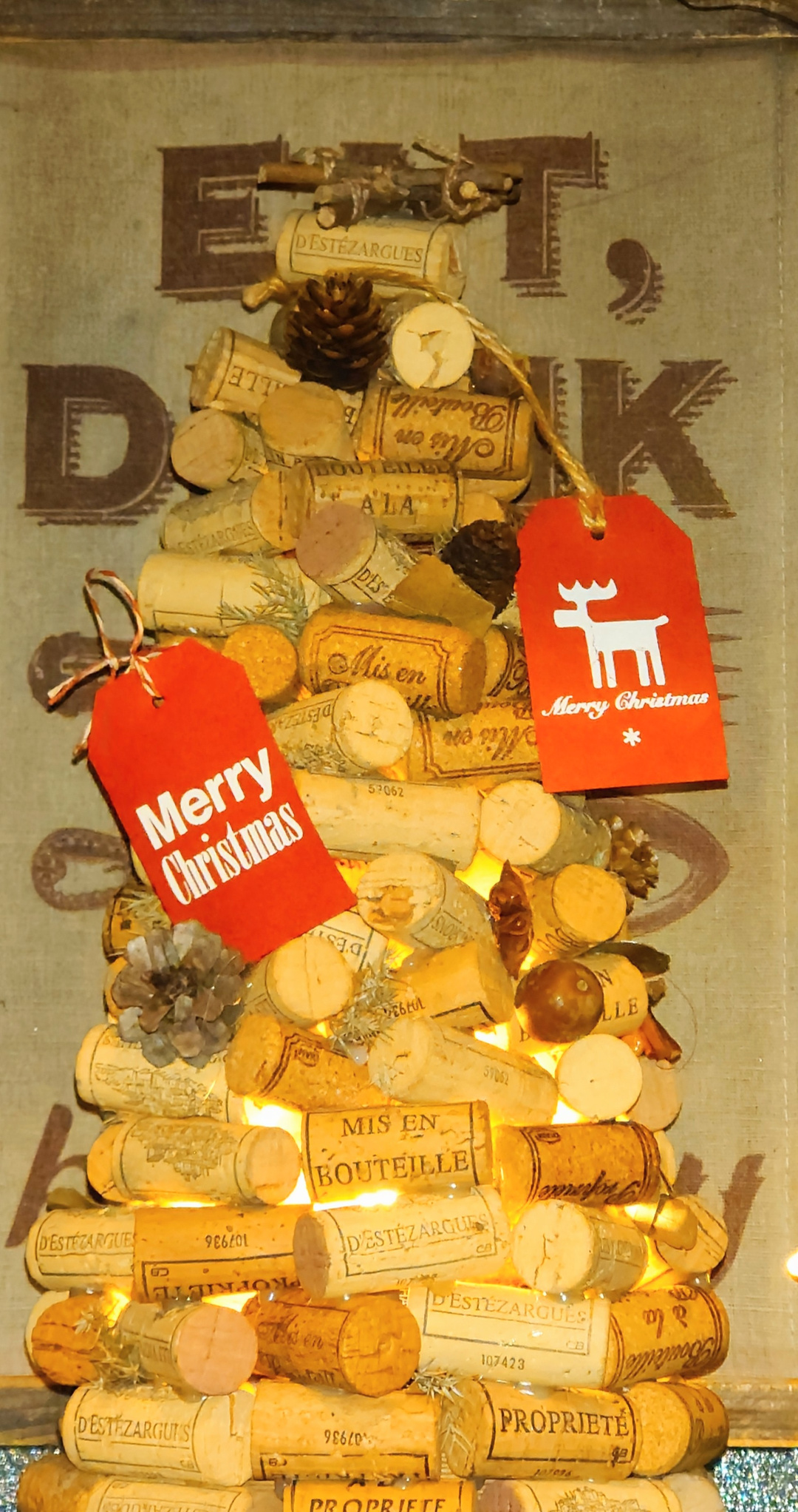 ワインコルクのクリスマスツリーです。 内側からのライトが、程良い感じです。