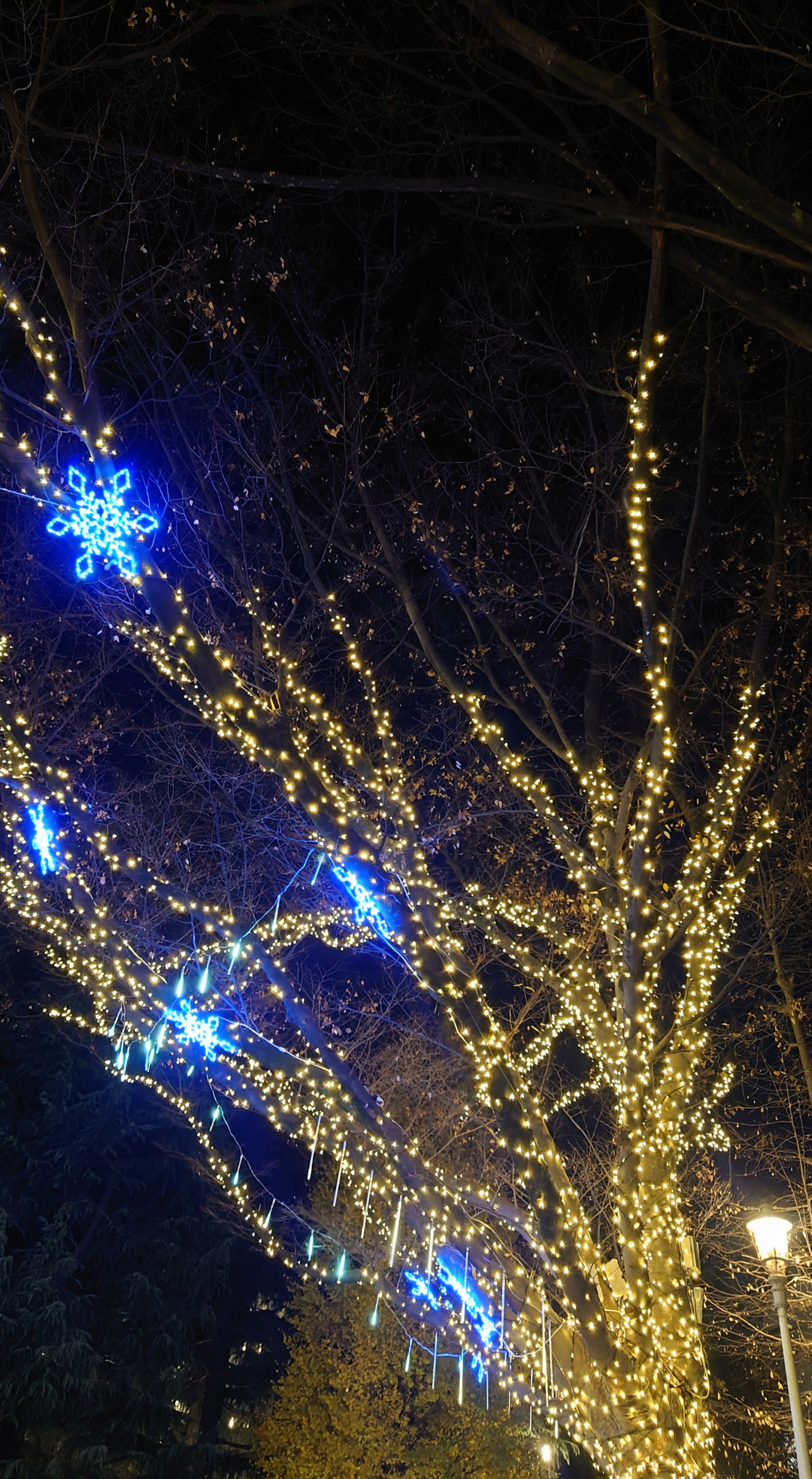 樹木を彩るイルミネーションが、綺麗です。