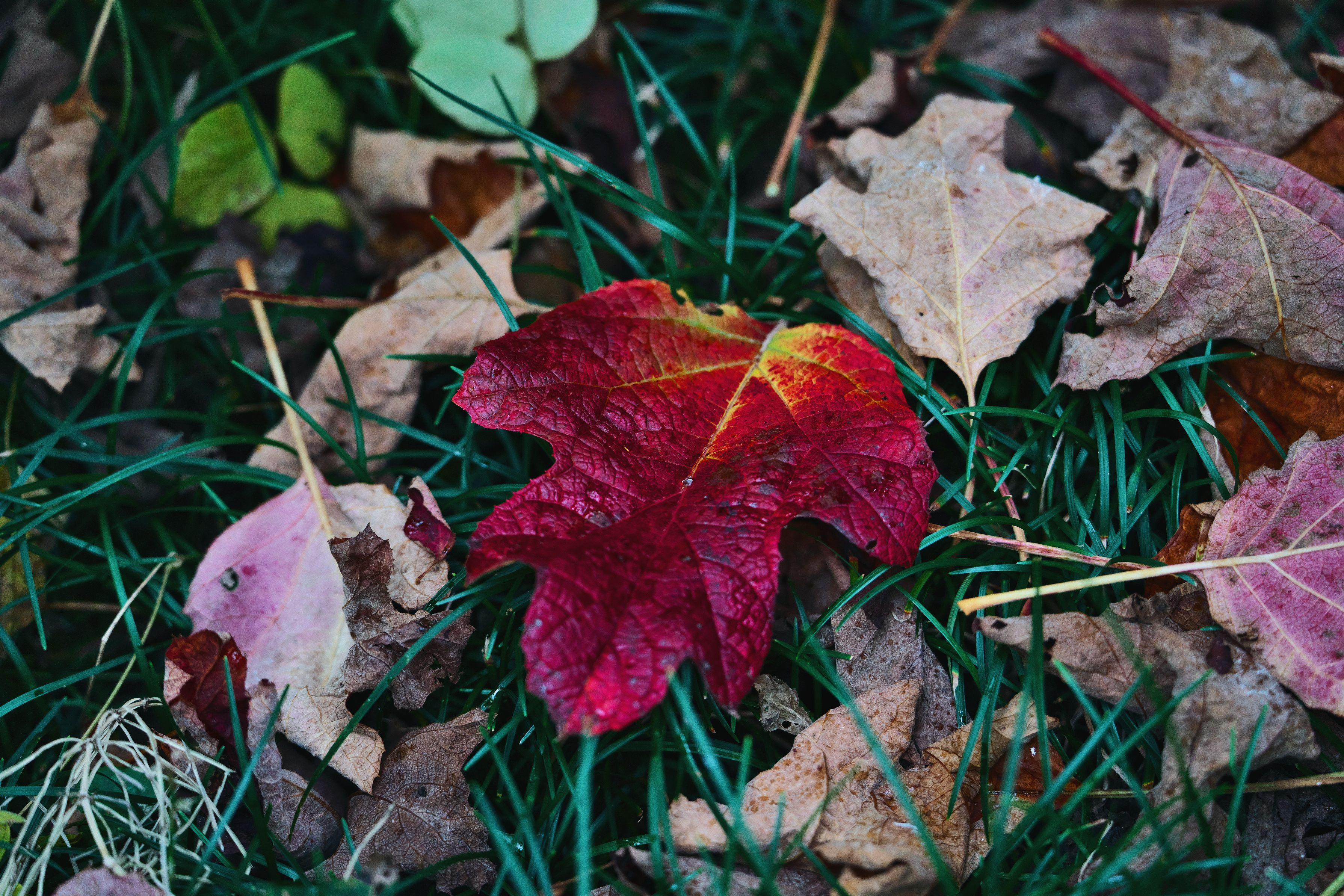 柏葉紫陽花だけは今年真っ赤に紅葉してくれた