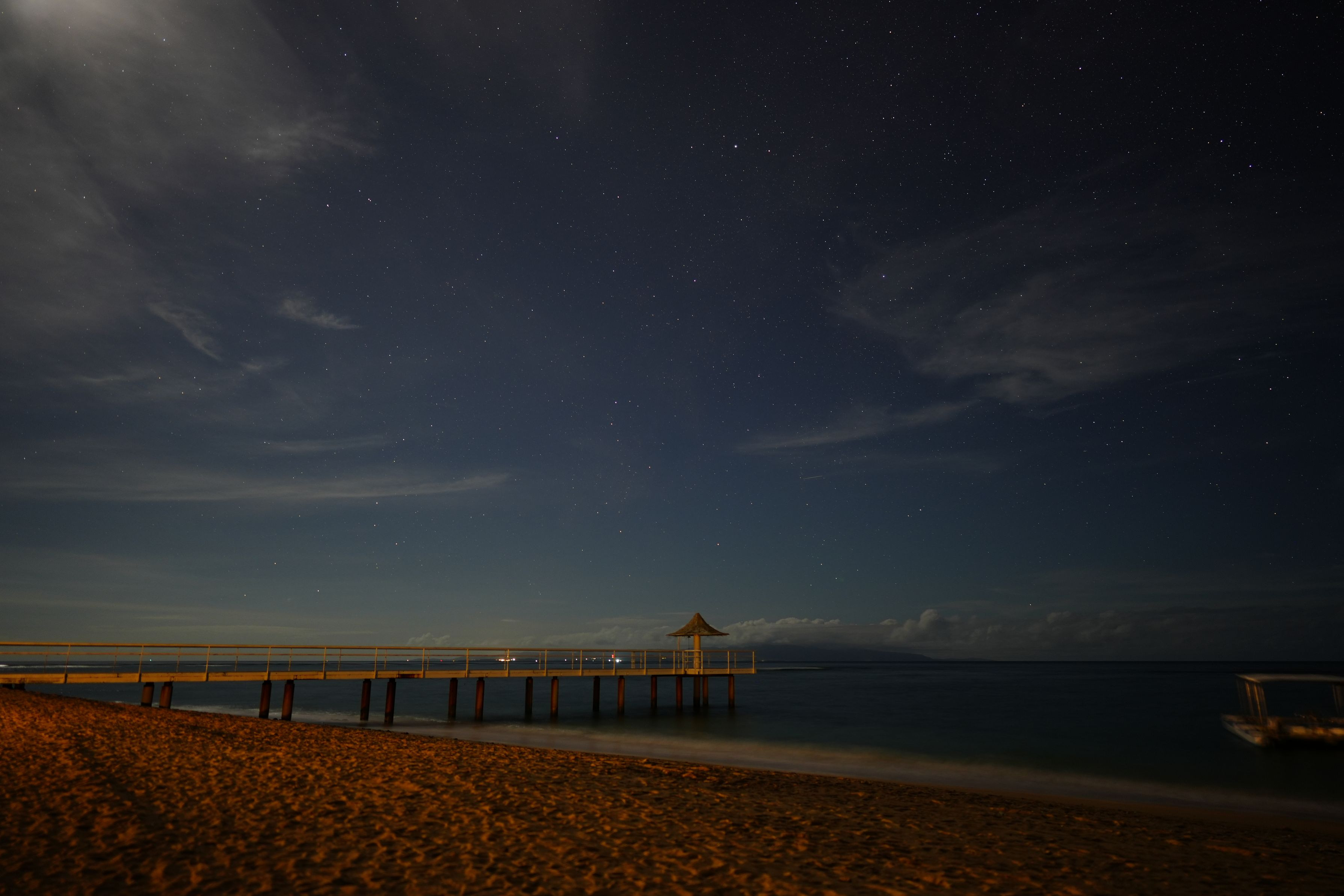 石垣島 フサキビーチリゾートのANGEL PIER。 月が出ていて明るかったので星はまばらですが、美しい星空を堪能しました。