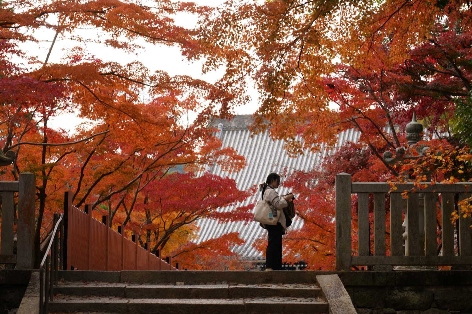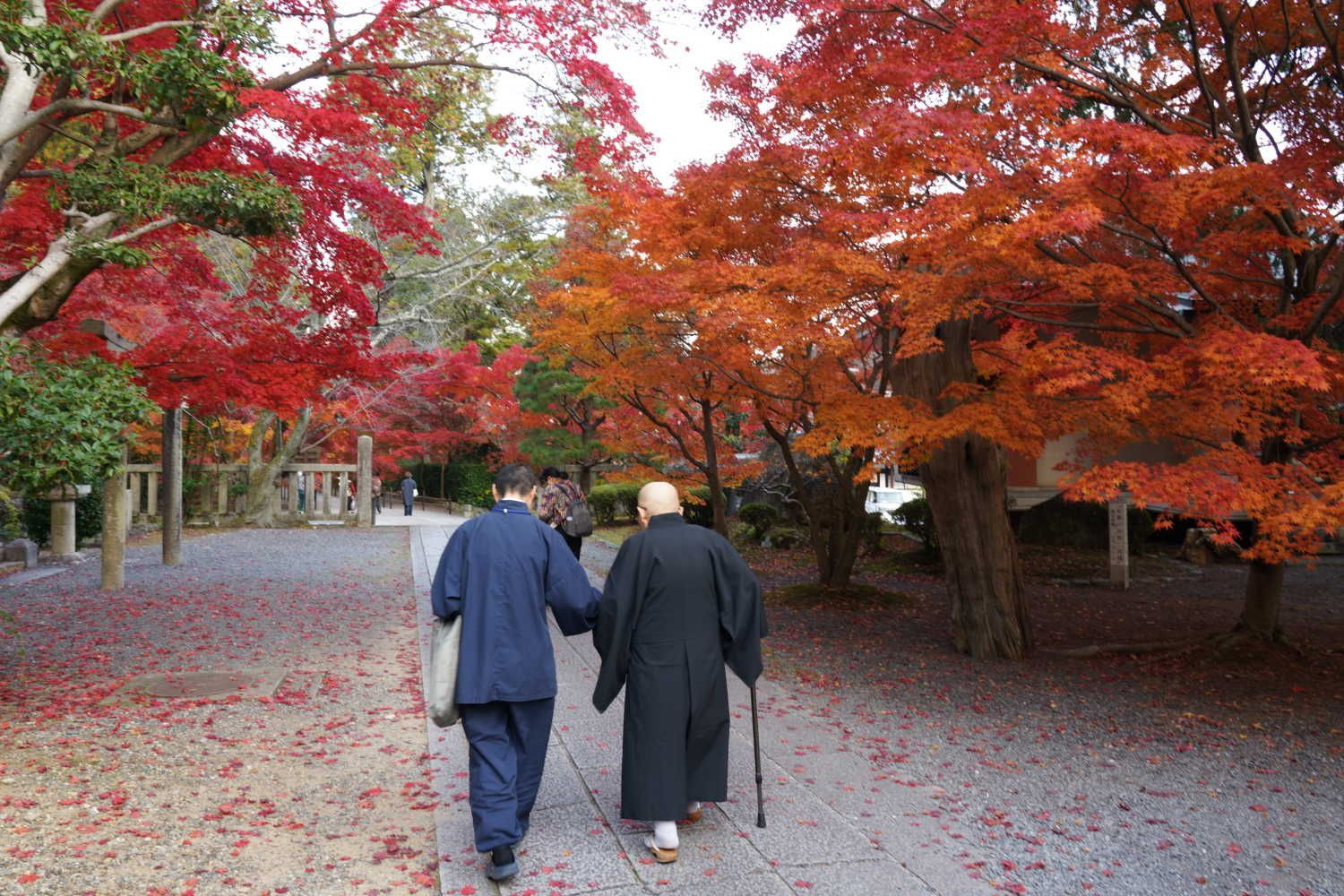 これを撮ってから2枚目の左手にある石段を上って御影堂に戻り、お参りを済ませて後ろを振り向くと、表参道を先程のお二人がこちらに向かって来られるのを発見‼