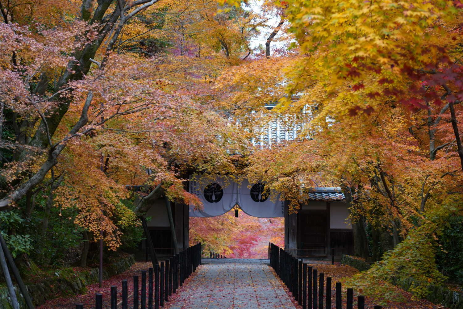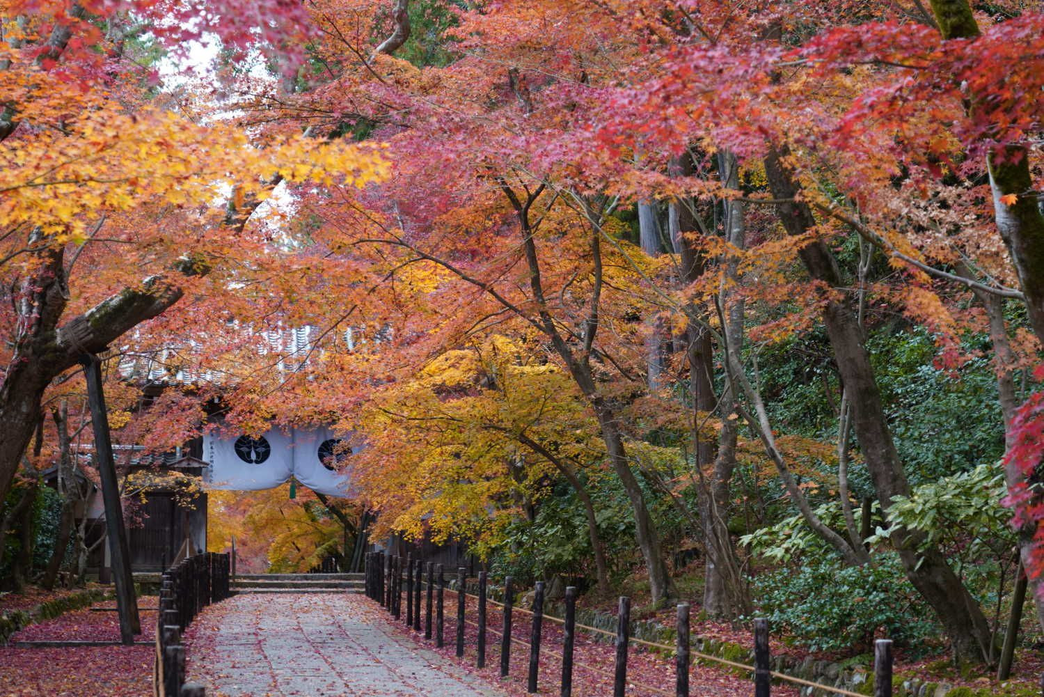 以前の気候であれば有料期間中にこのもみじ参道は見頃を迎えるはずですが、今年は少々心残りの景観