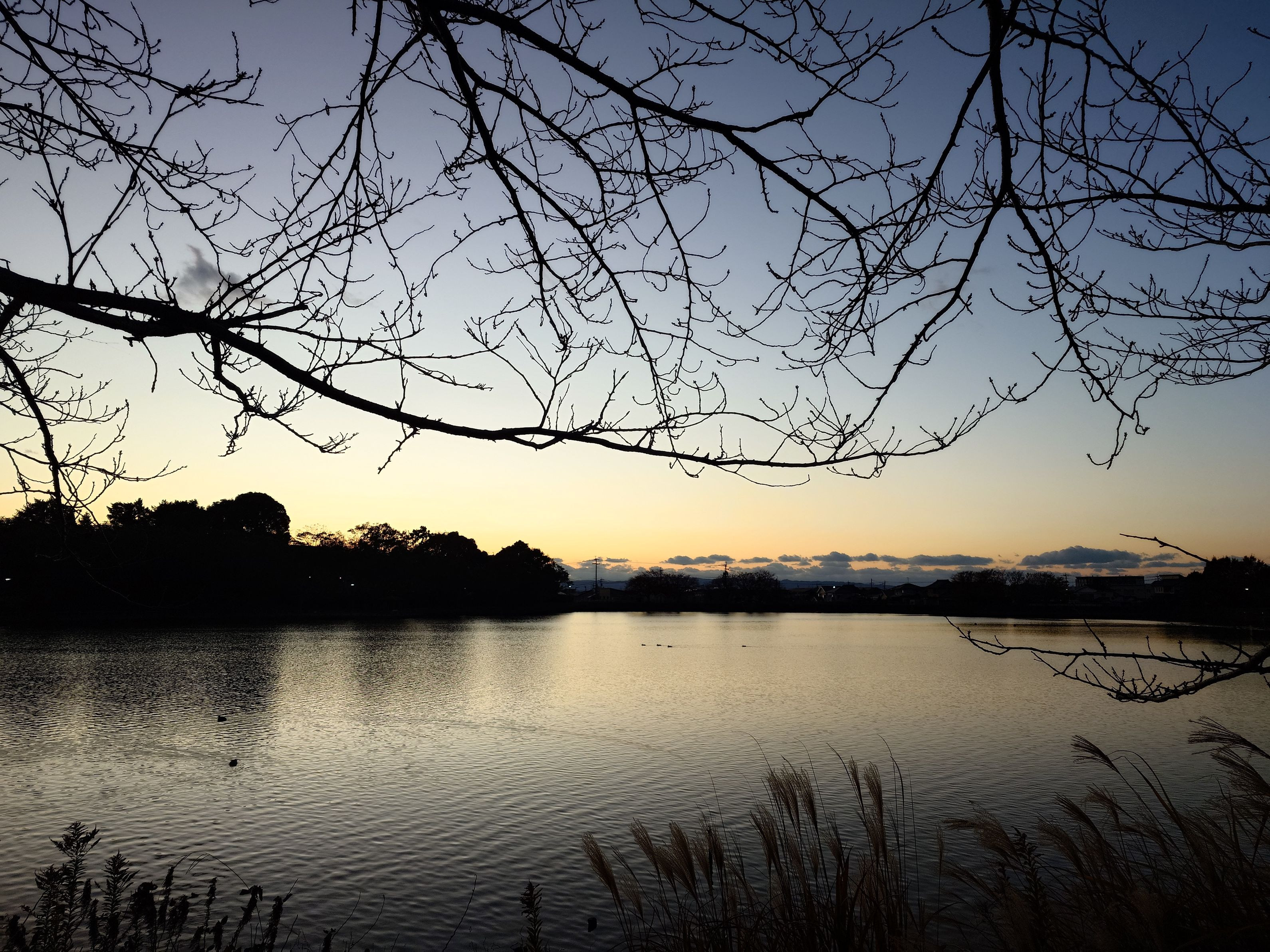 池田湖畔(大村市)の夕暮れ風景。空の色の移ろいが晩秋を感じます。