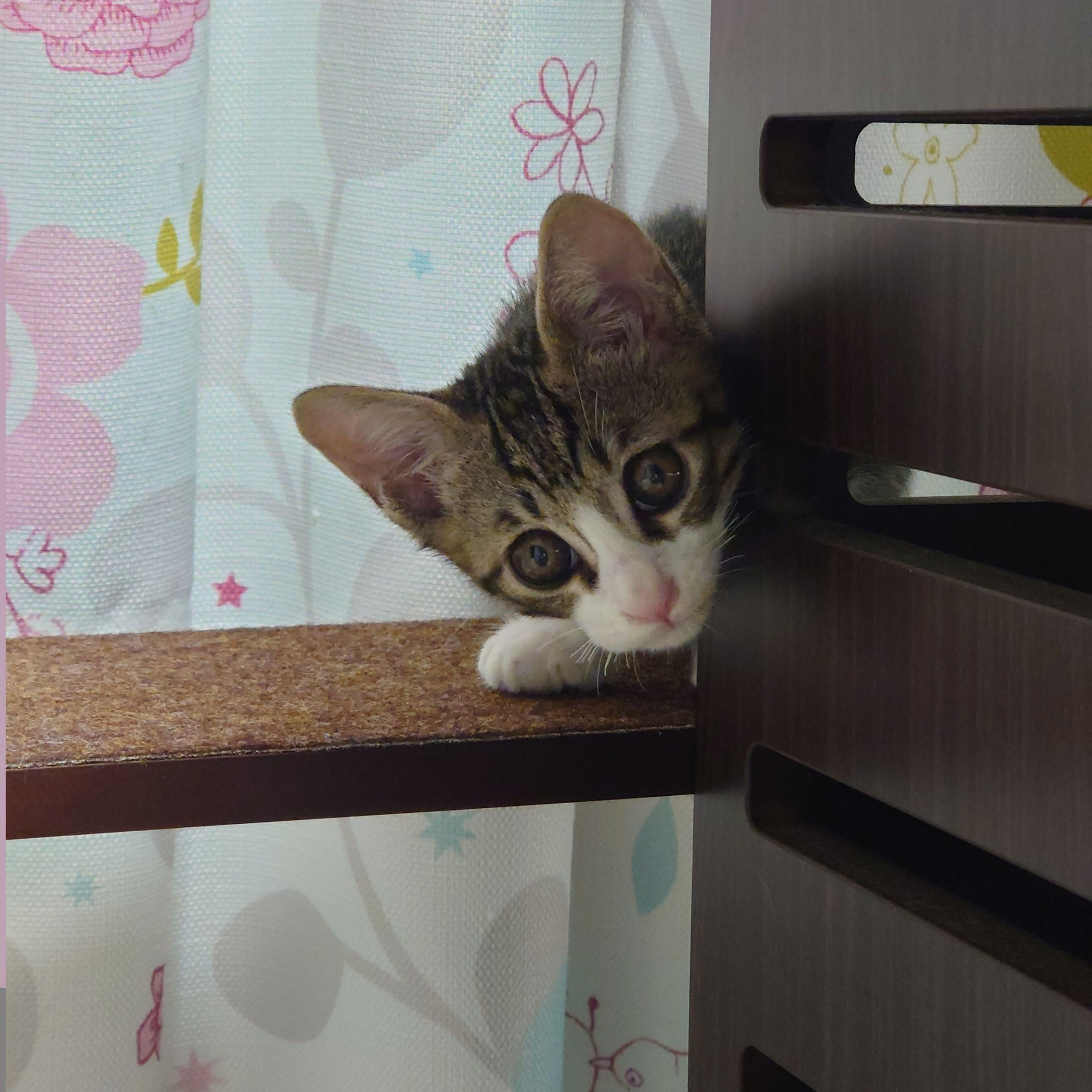 名前を呼んだら、お顔だけ出してこっちを見てました♥