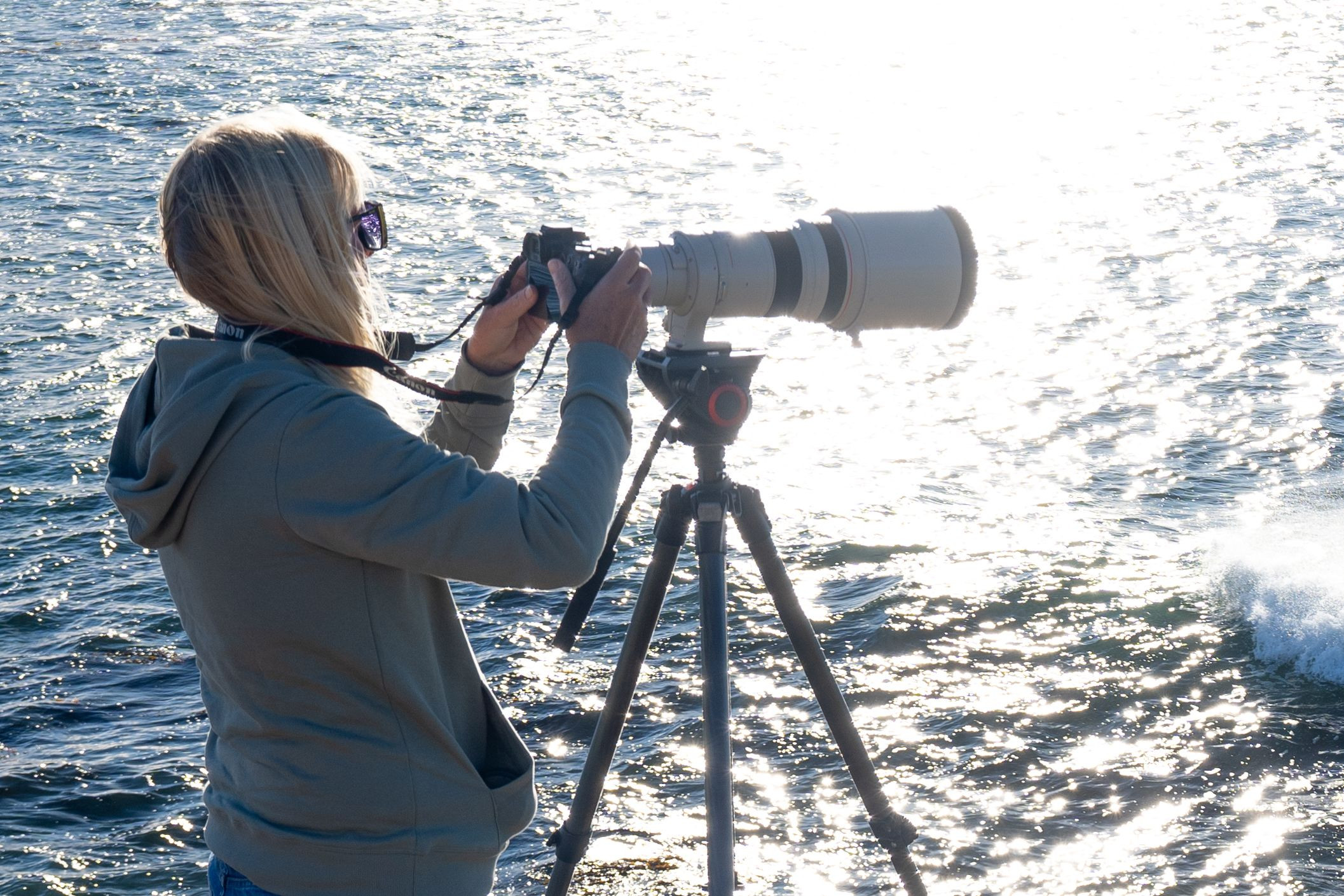 サーファーを狙う女性 Adobe Lightroomでコントラストを調整してトリミングしています