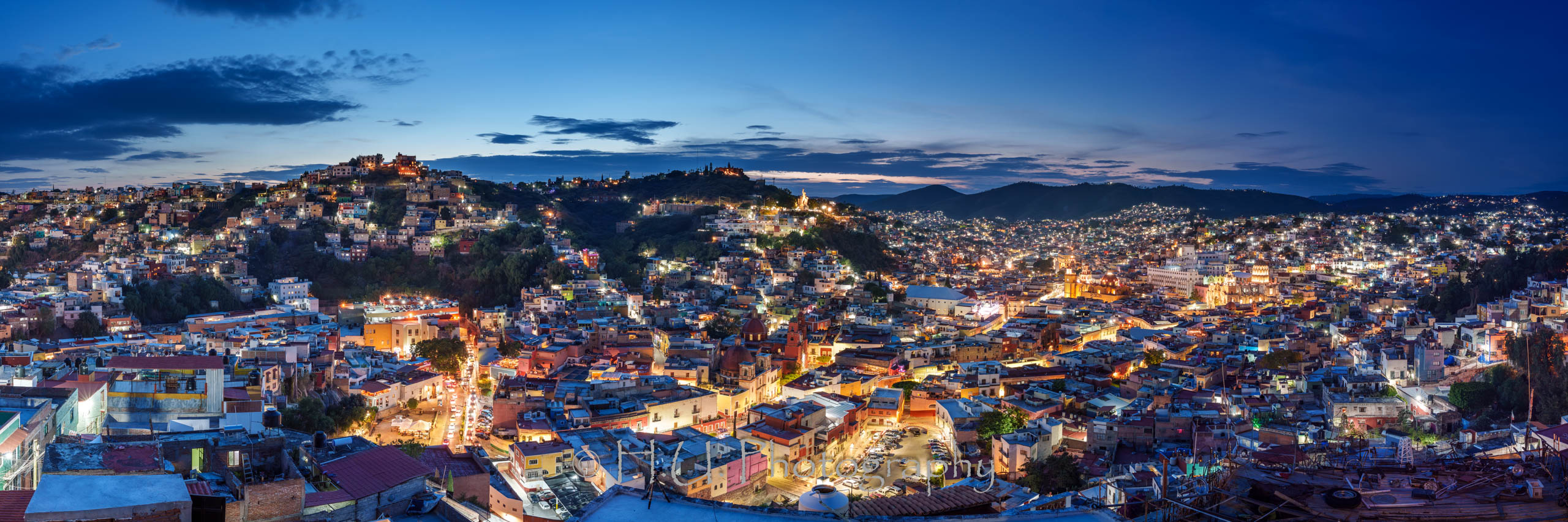 先日投稿したグアナファトの夜景、別アングルです。 マジックアワーの空と町明かりの調和が奇麗でした。