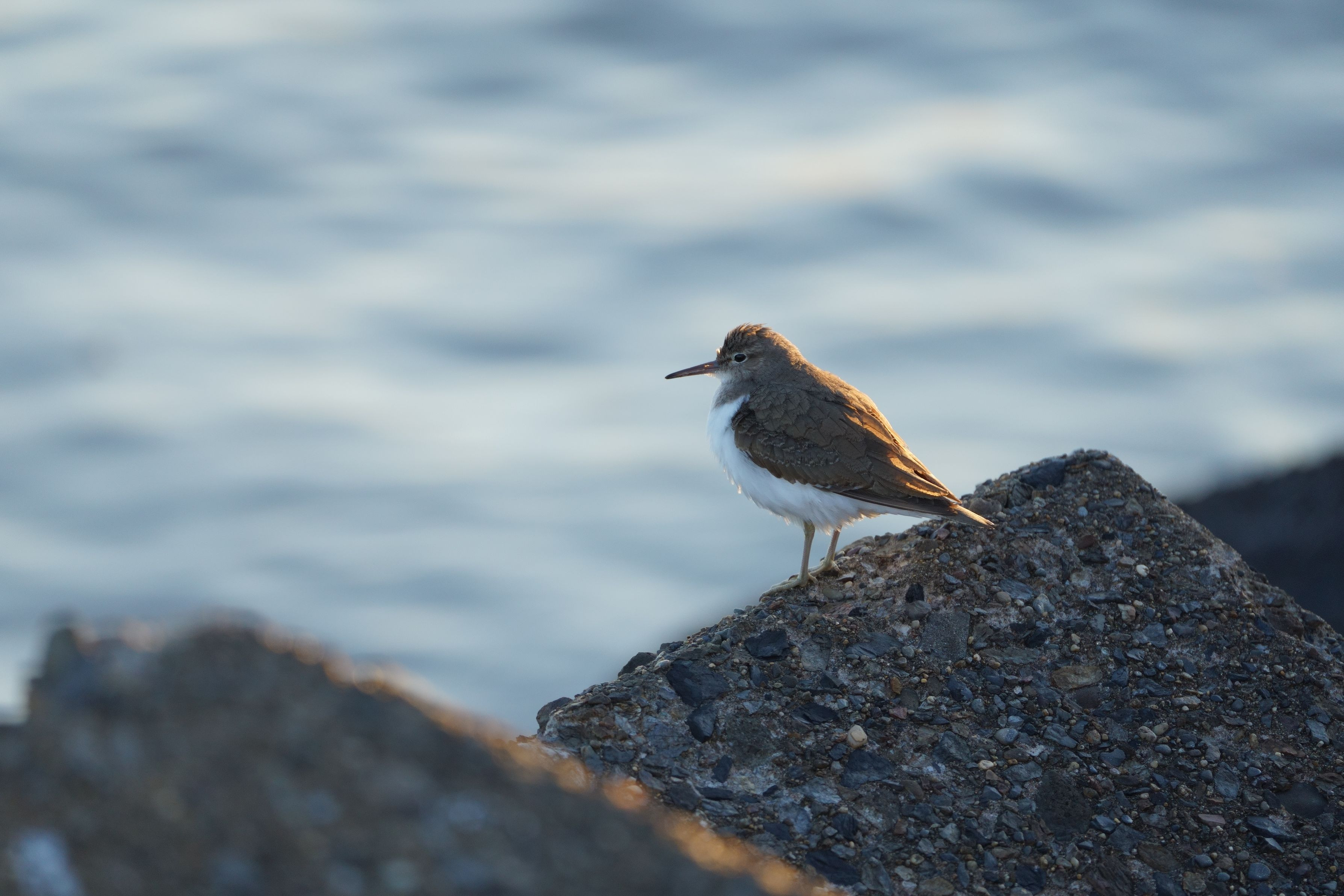 イソシギさん、 夕陽に包まれ誰を待つ。