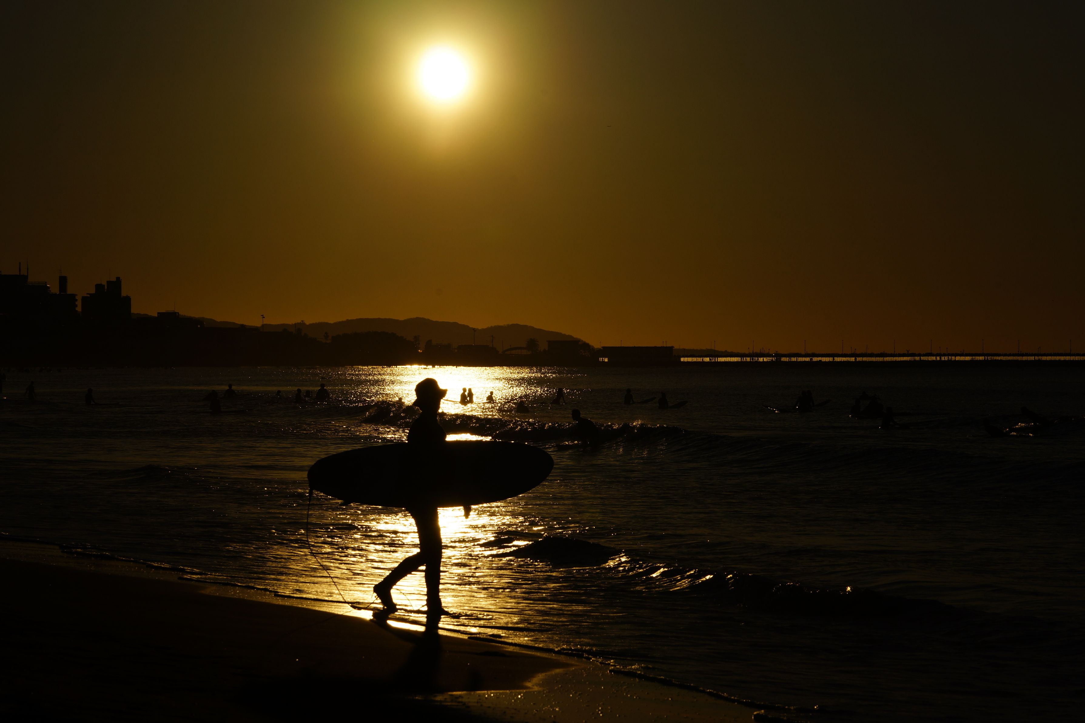 初日の出と共に波乗りに繰り出すサーファーさん