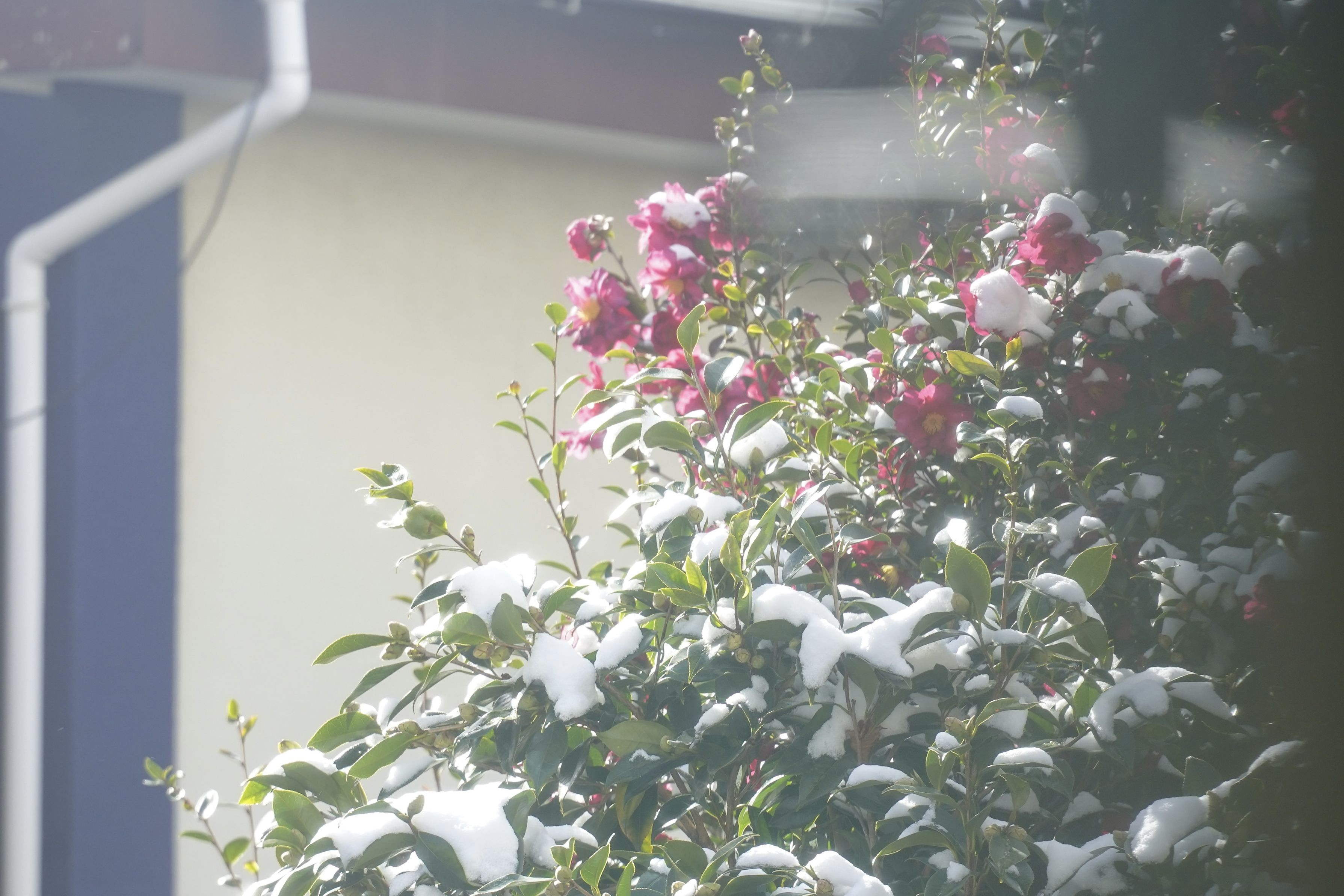 九州にも雪が降り、交通も麻痺し、仕事がお休みになり、カメラを持つも寒さに負けて。 窓から見える雪景色に目を奪われて撮りました。