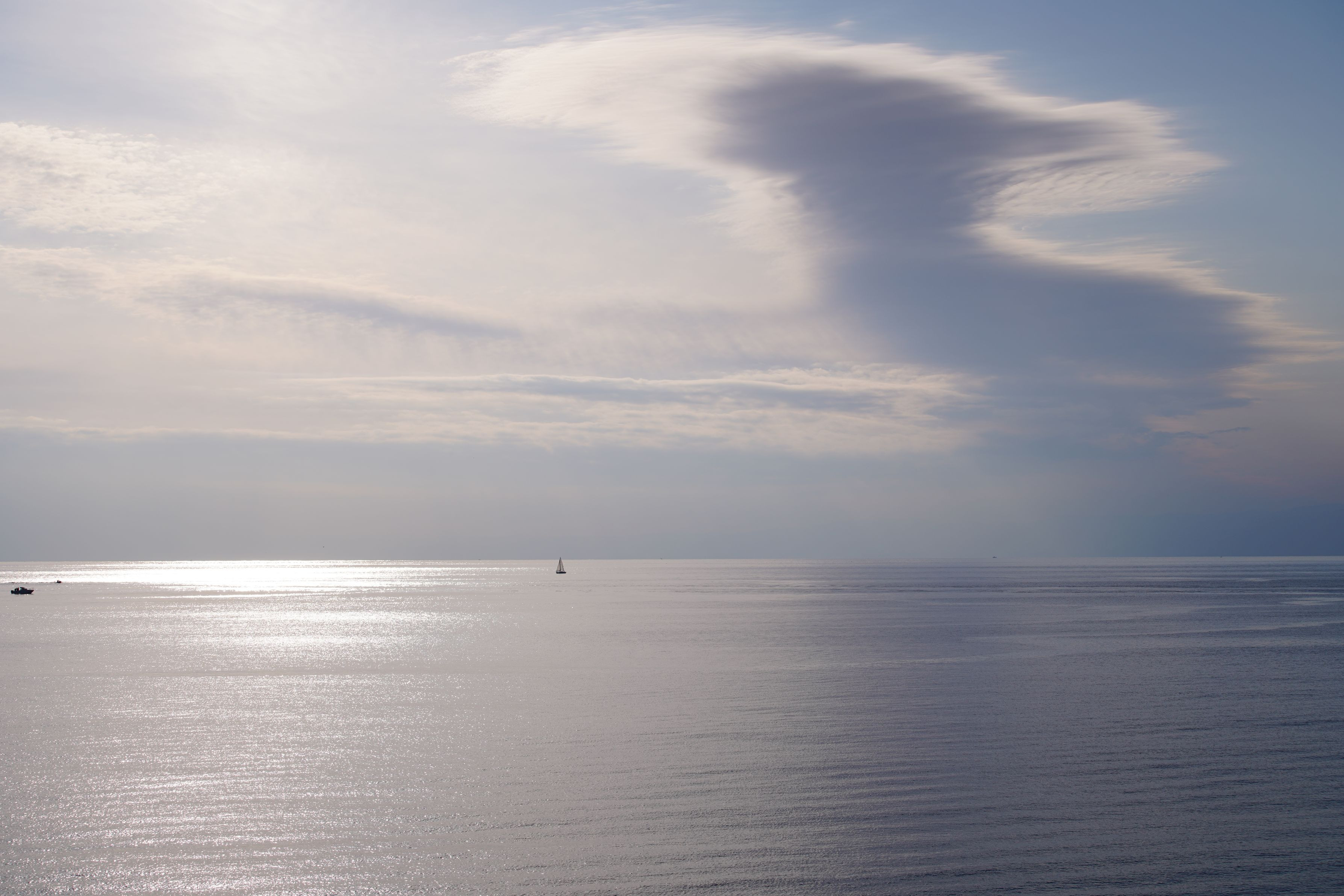12月の湘南海岸にて、夕景にはまだ早い午後14時38分 水面に光が 穏やかな水面に光が差し込む!!