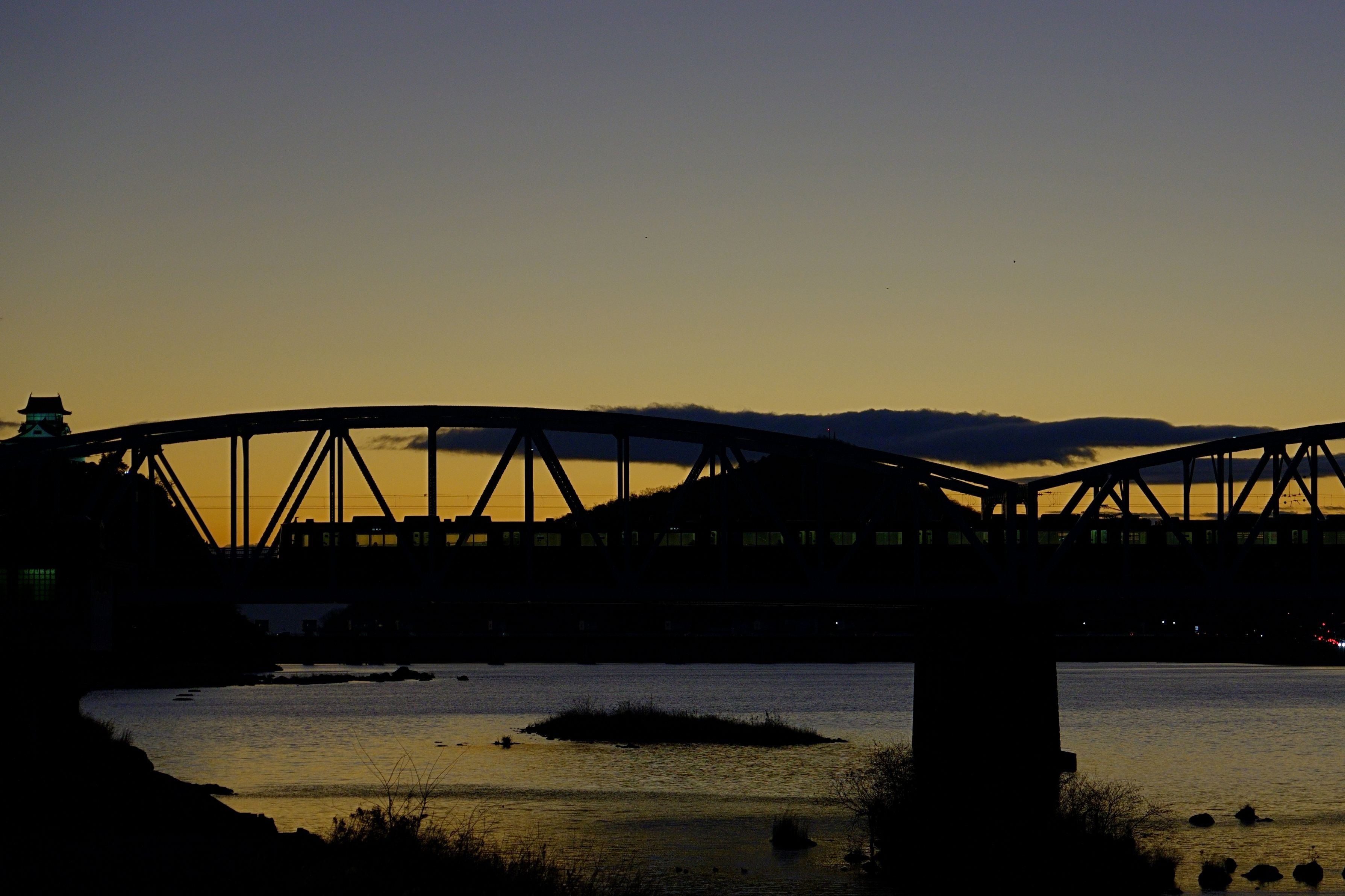 製品情報>My Sony>αcafe>夕陽に浮かぶ城と電車(オシートさん)